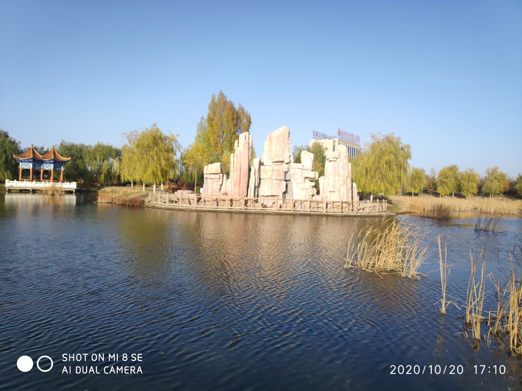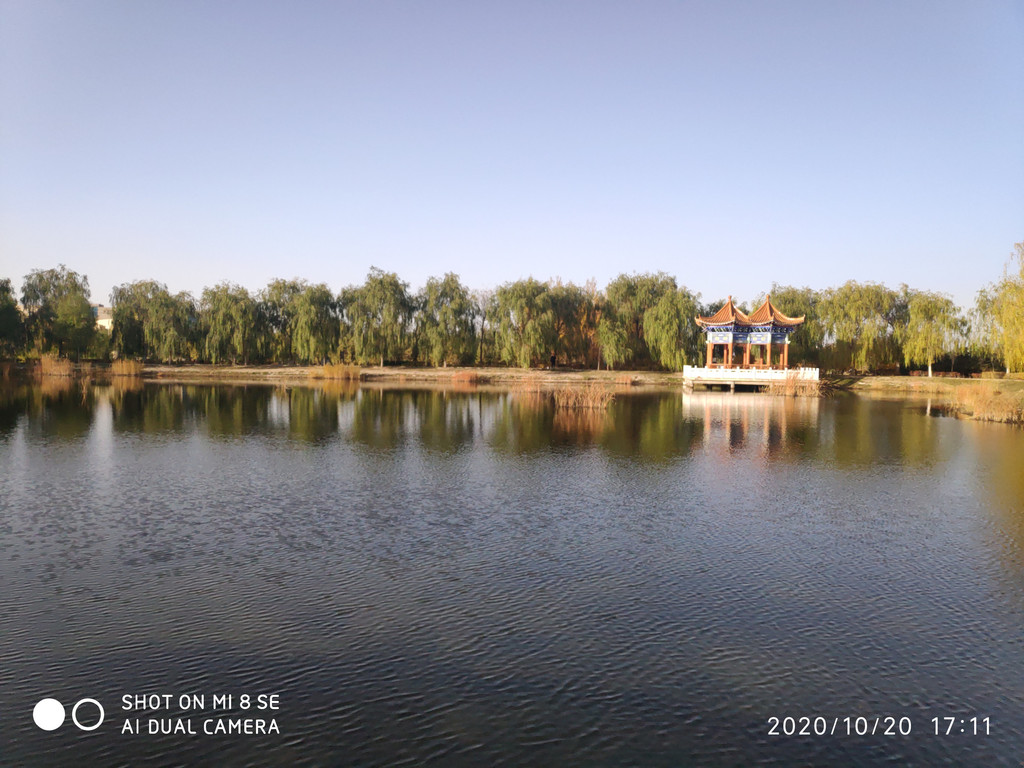 在干燥的西北居然有这么一大片人工湖。