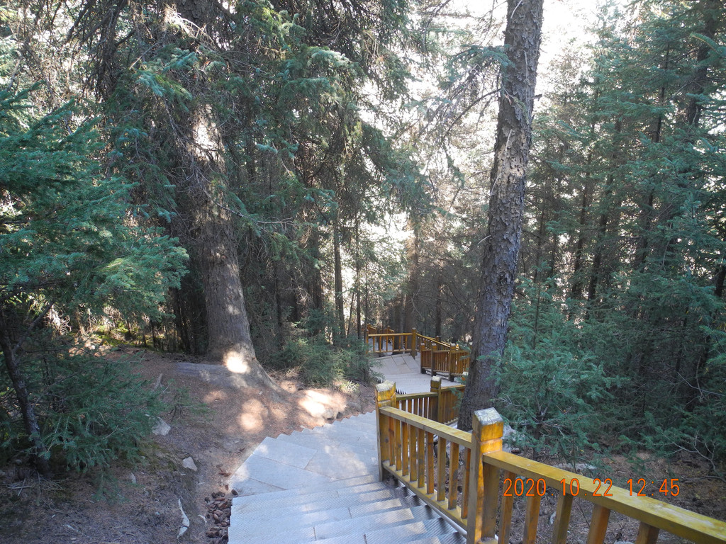 焉支山是森林公园,属于祁连山国家自然保护区。坐车上山到玉皇观,然后徒步3小时左右,兜了一圈,45元的门票也还好。这里还是隋炀帝会见西域使者的地方,据说还开了世界最早的博览会,被誉为“国博故里”。但我没看到隋炀帝行宫。进入景区后,顺便问了下门口的检票人员,今天有几个人进去,她说前面只有2个人,我们一行5人。就是说偌大的焉支山目前就我们7个人在游玩,真是太值了。