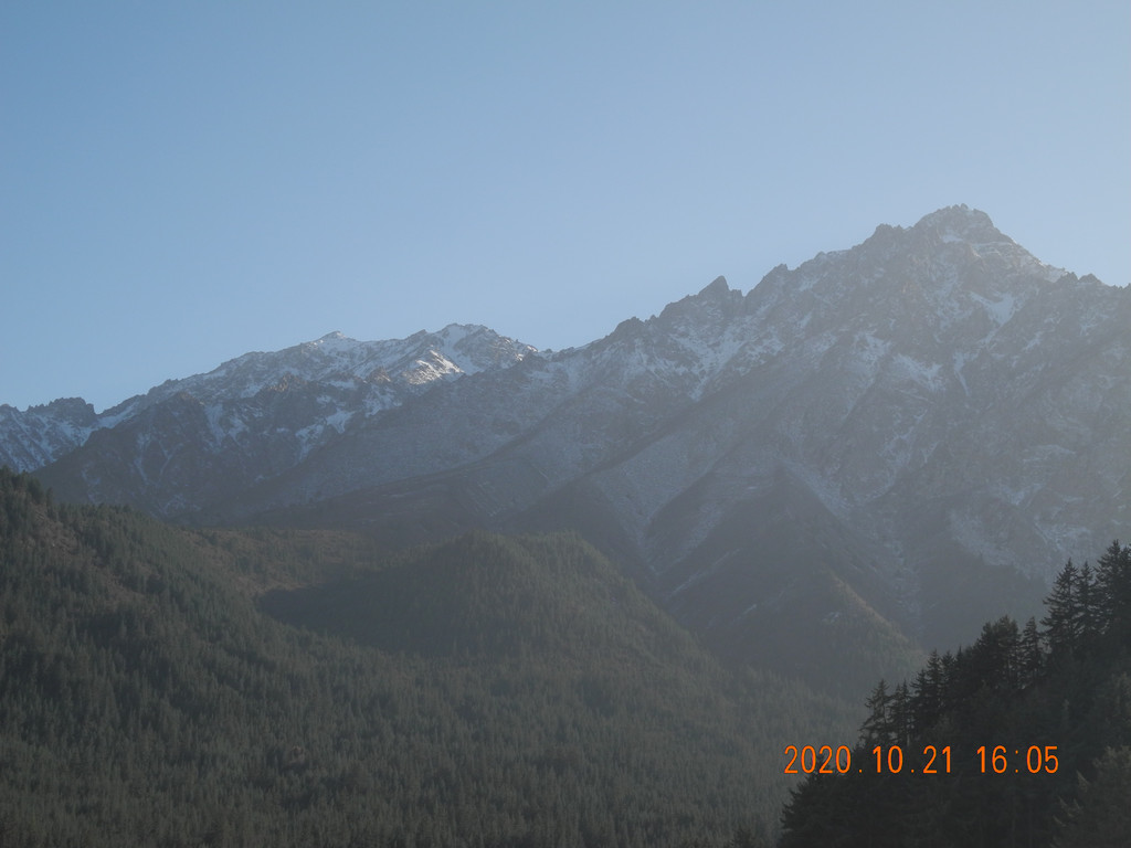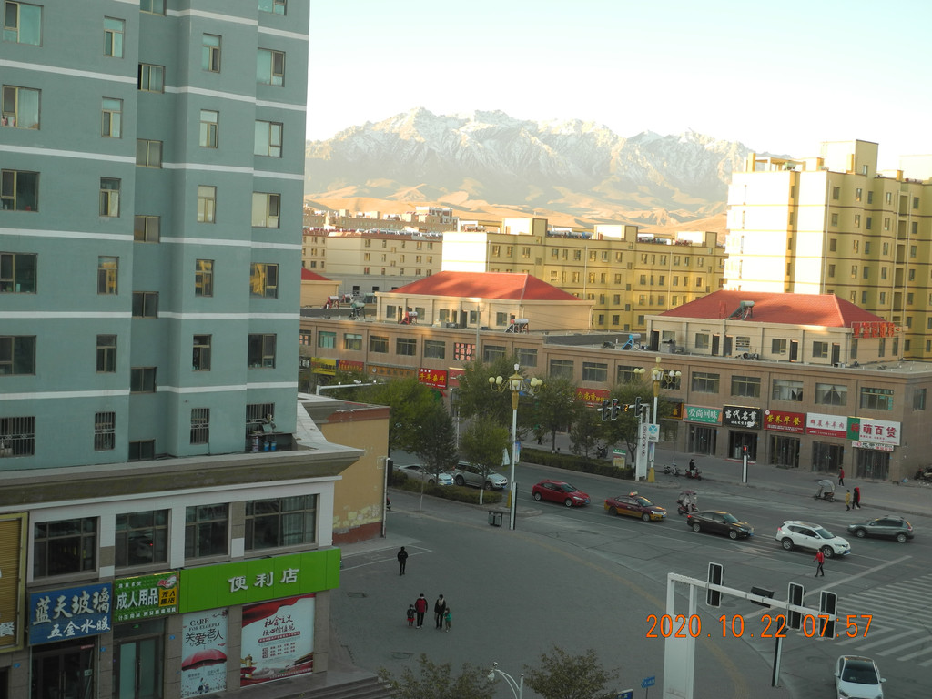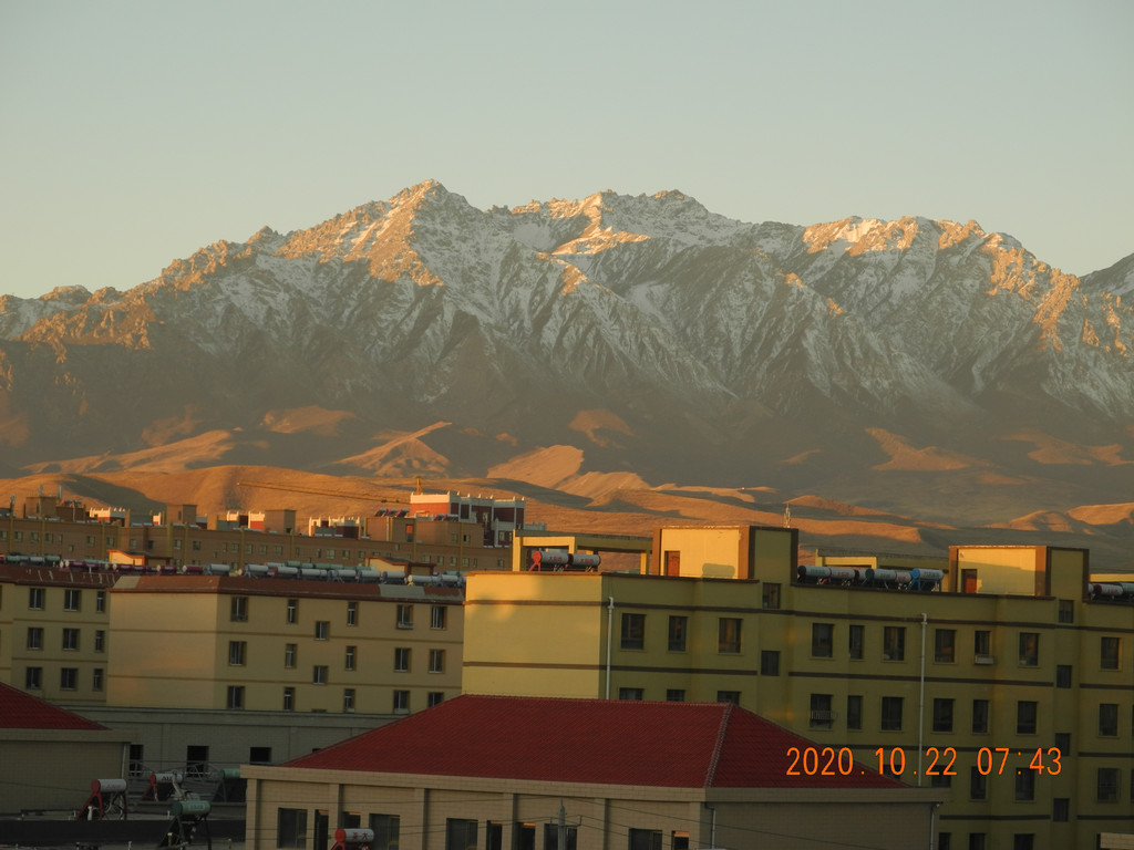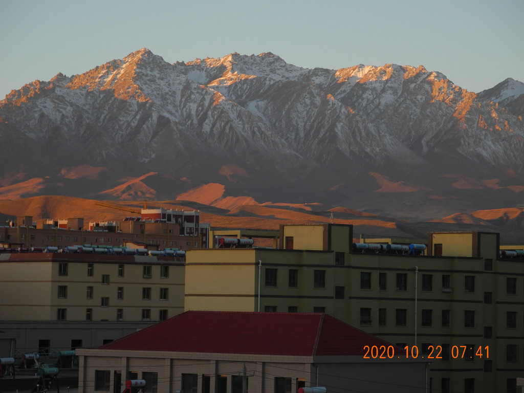 早起,远处的雪山引起了我的注意,居然在宾馆窗口能拍到‘日照金山’,这间房真是太棒了。强烈推荐。