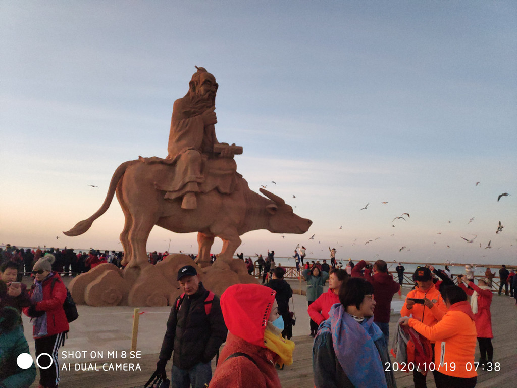 早起5点,居然只有跟我一间房的兄弟起来,其他人都起不来。算了我们乘早出发抢个好位置,黑灯瞎火的上车狂奔60几公里直奔居延海,路上出城后就没路灯,也没车,跟着导航不知走的对不对,转过弯去有一辆大巴开到我们前面,终于放心了,路没错,随着汇入的车辆越来越多,跟着大部队来到居延海停车场,大巴不多,自驾的也没多少,买票入园60门票15车费。一下车就冻得瑟瑟发抖,我已经将带来的衣服全都穿上了。抖着小腿一路跟到观景台,反正四周一片黑啥都看不见。