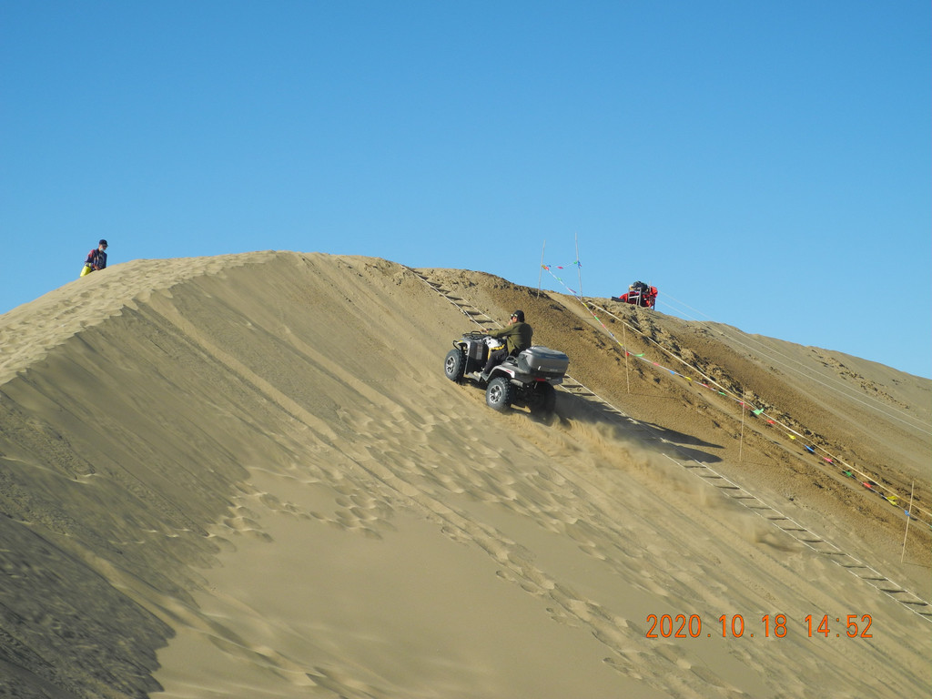沙地摩托正在冲上沙山。