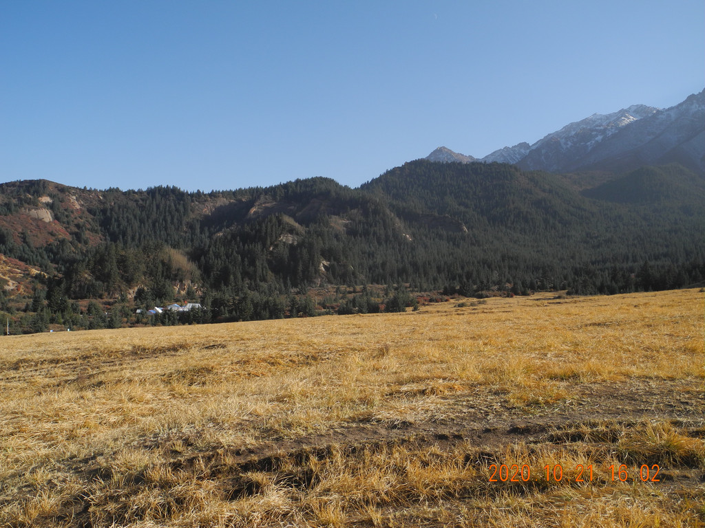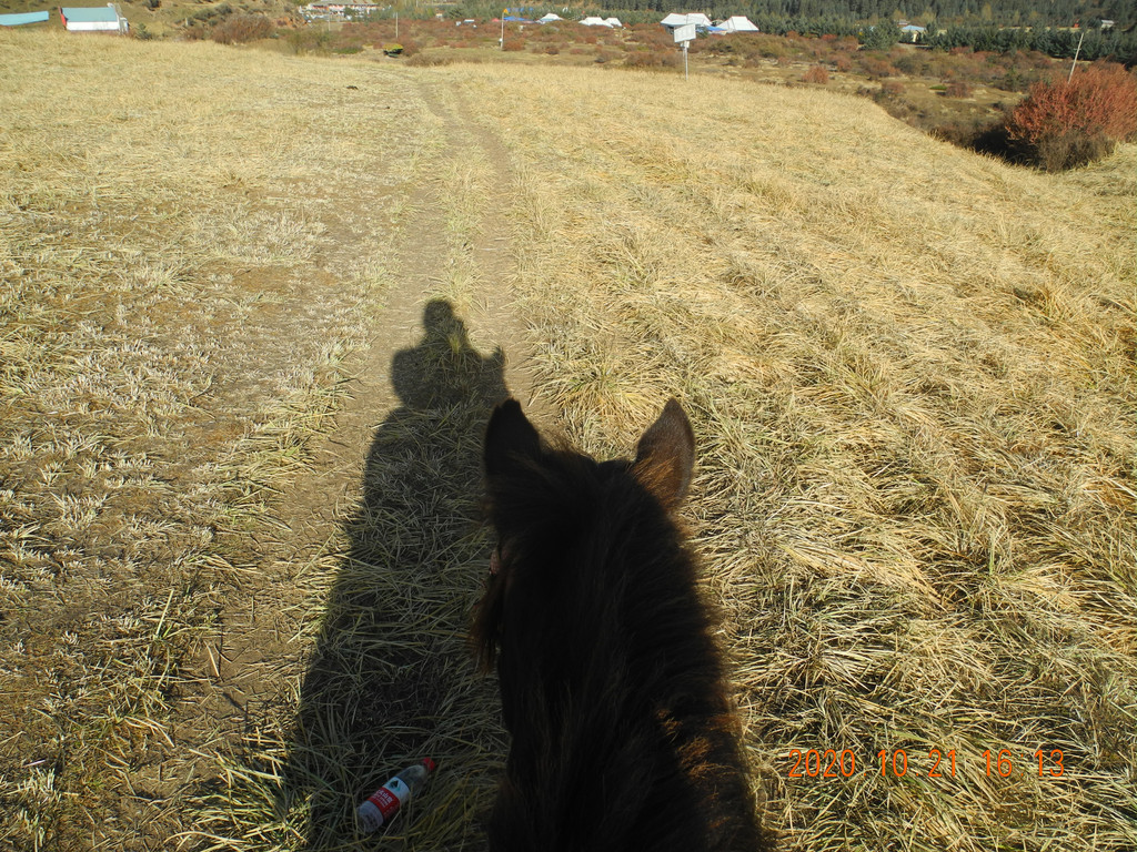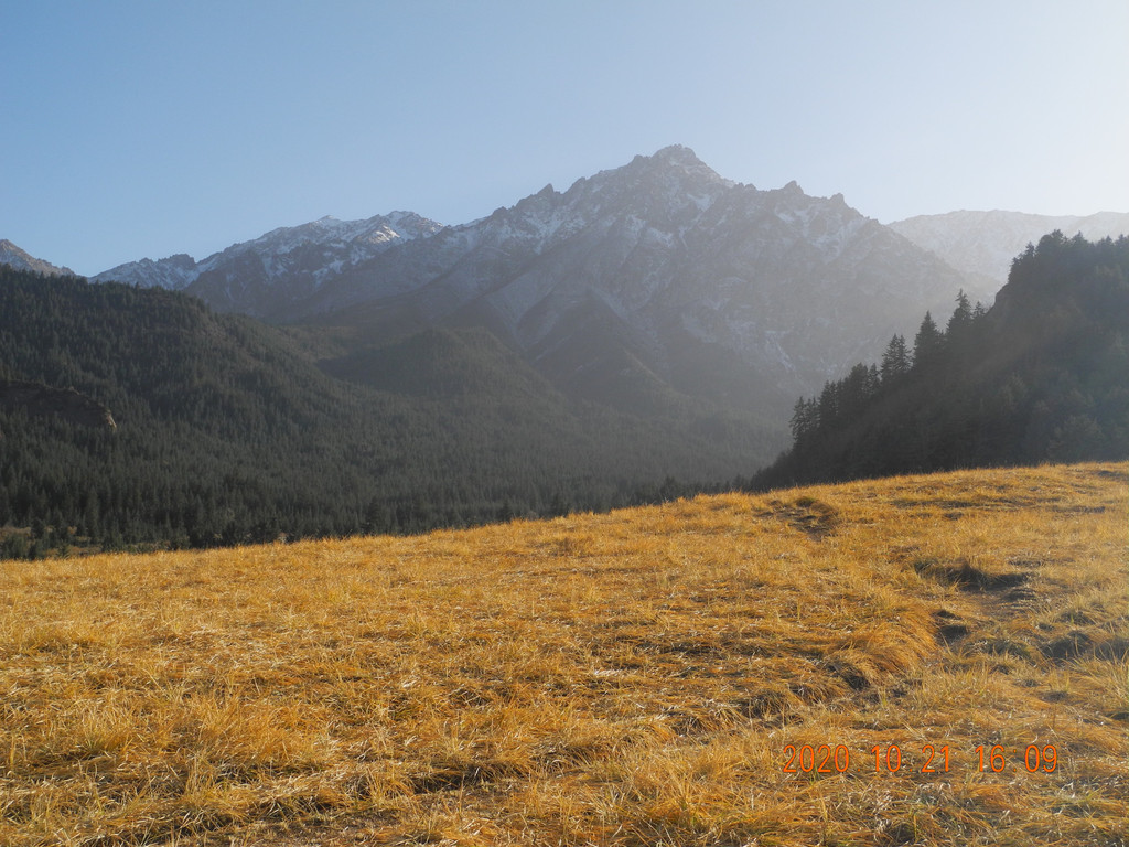 山中大片草场,但是逆光,雪山拍不清楚。都是在马上拍的。
