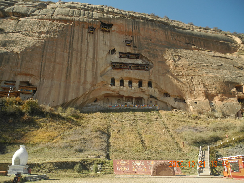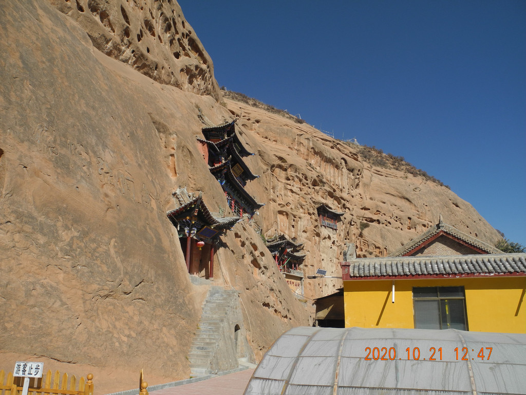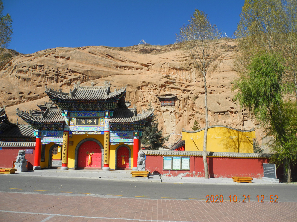 千佛洞,里面不能拍照。大门口来一张吧