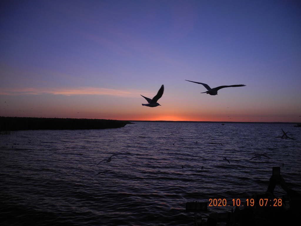 鸟儿的感知,刚有一点亮光,鸟儿们就先出来觅食了。