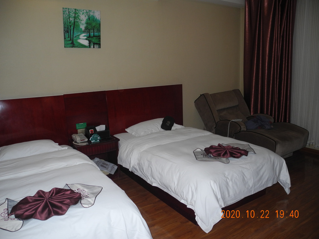吃完第一顿拉面后继续赶路,今晚住宿酒泉,在高速上订了酒泉当地4星的宾馆,龙腾宾馆,有3人房,348。标间257。一下子整超标了。不过真舒服。