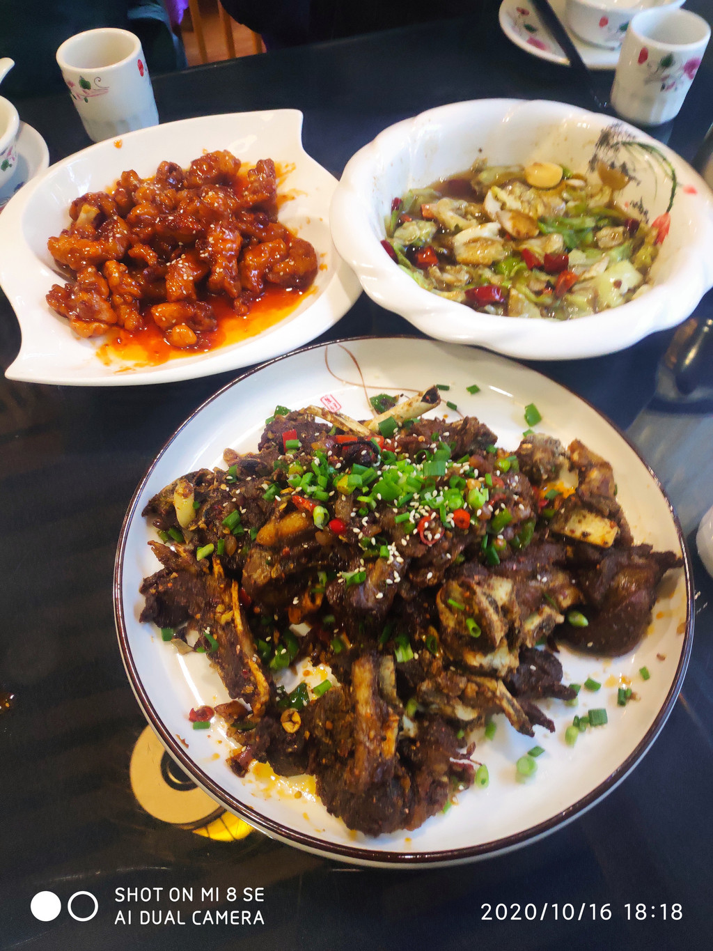 光卫生间就这么大,但洗完澡还挺冷。大西北早晚冷,中午热,紫外线强。房间没拍大伙都躺着了。放好行李照旧找店觅食,酒泉的消费还真不高。一桌也是300多,一如既往的硬菜--羊排,孜然羊排