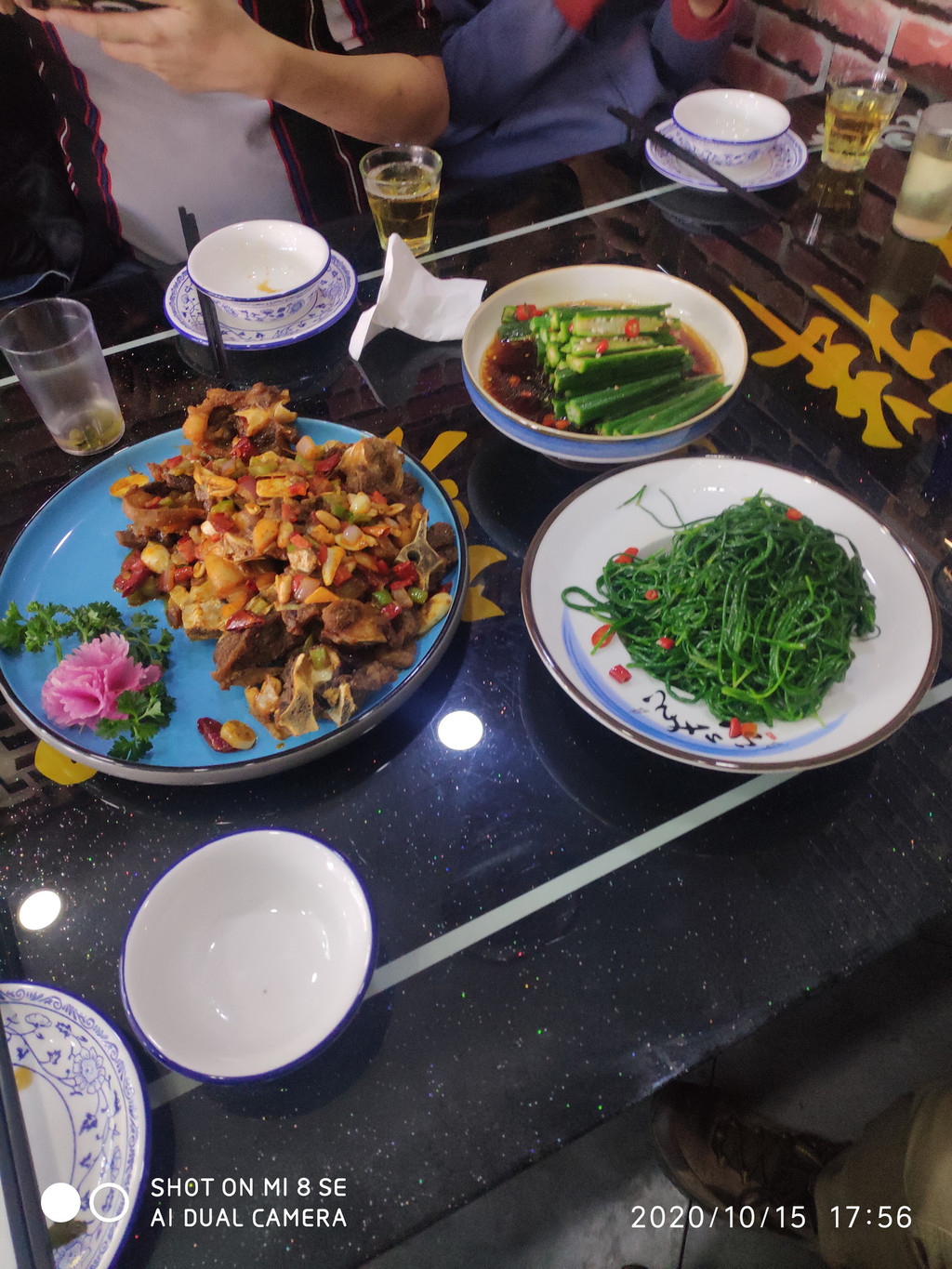 菜还没上齐,大漠羊肉,沙葱。沙葱一定要炒着吃,今天吃的是凉拌的,口味一般,后面几天沙葱都是炒蛋,味道真不错。这顿300多,这里的菜量大,5个人点了5个菜都没吃完,后来规定下次点4个菜,不够再加。饭后,打着饱嗝回去休息,今天早上4点多就起来了,太累了。早点歇着。