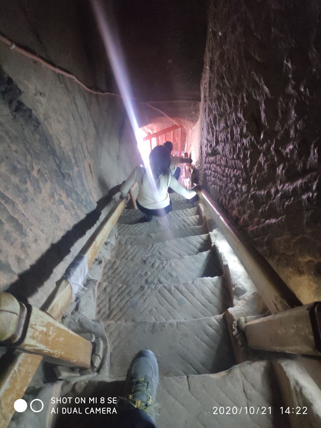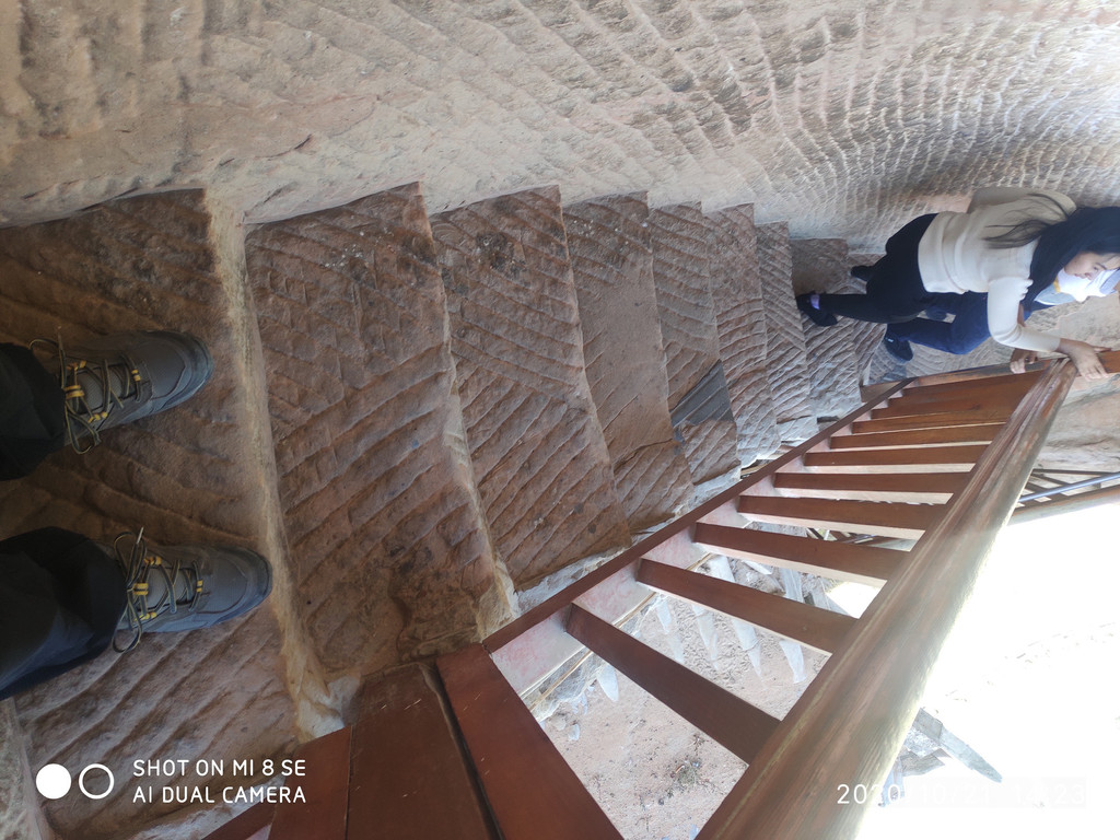 陡峭的楼梯,基本都要手脚并用。还好人少,否则要交通堵塞了,上下就这一条路。洞窟内我们讲话,同事们在外面都能听到,我们讲话并不大声啊,洞窟是否有喇叭效应?