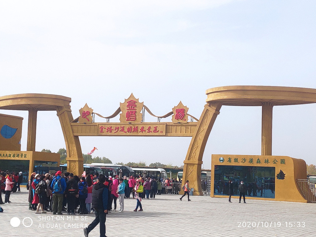下午3点到达金塔胡杨林,门票65,交30元停车费能自己开车进去,金塔是人工林,本想额济纳的叶子都枯了,这里的好不到哪里去。到大门口先去问下从里面出来的游客,他们说里面还好,能够看看,所以我们买票入园。