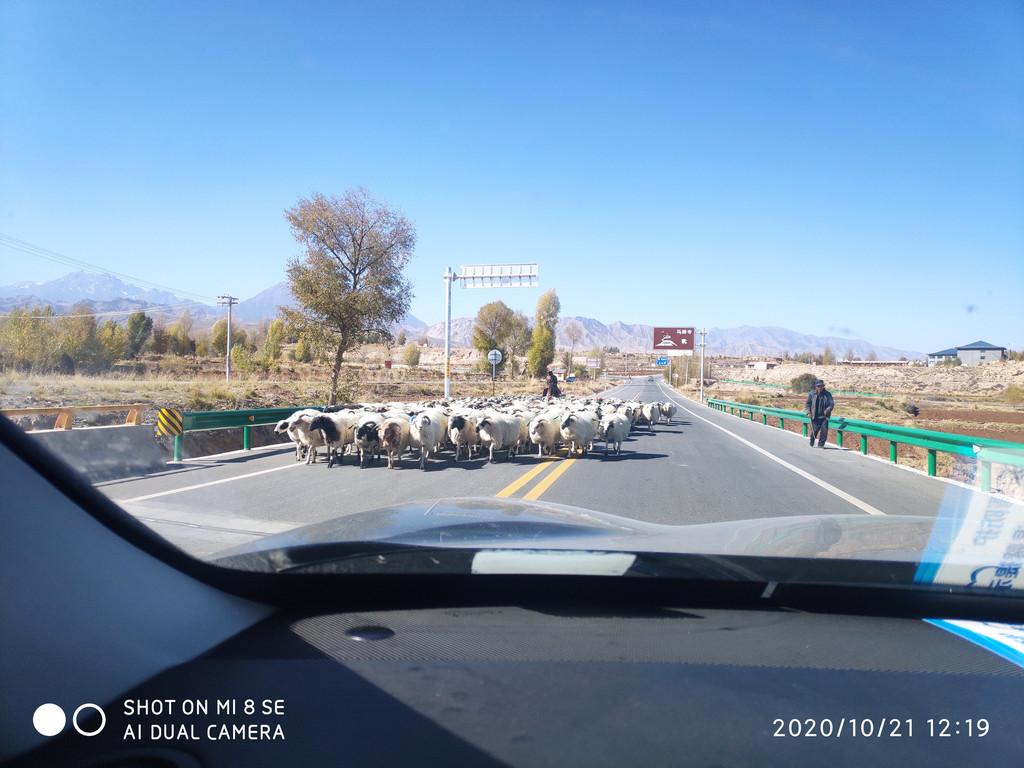 遇到羊群了,只能让路