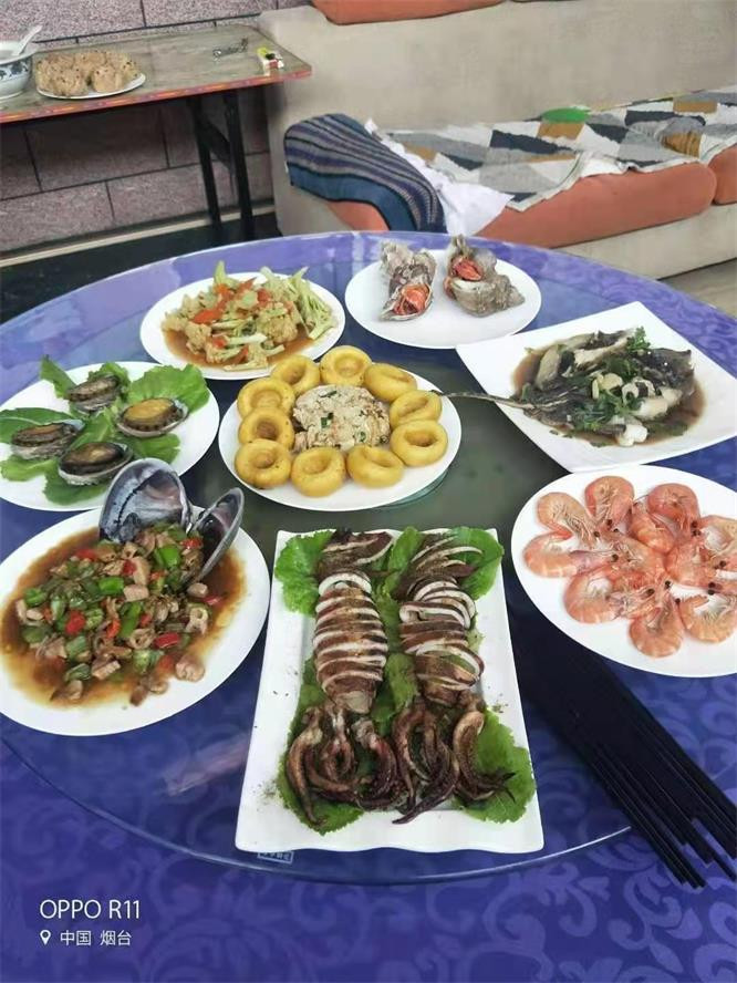 小孙渔家一日三餐的海鲜种类有夏夷贝,扇贝,螃蟹,海螺,海胆,鲍鱼大虾,辫子渔,鲅鱼,黑鱼,小黄花鱼等,餐餐不重样,尽情享受渔家独特风味。