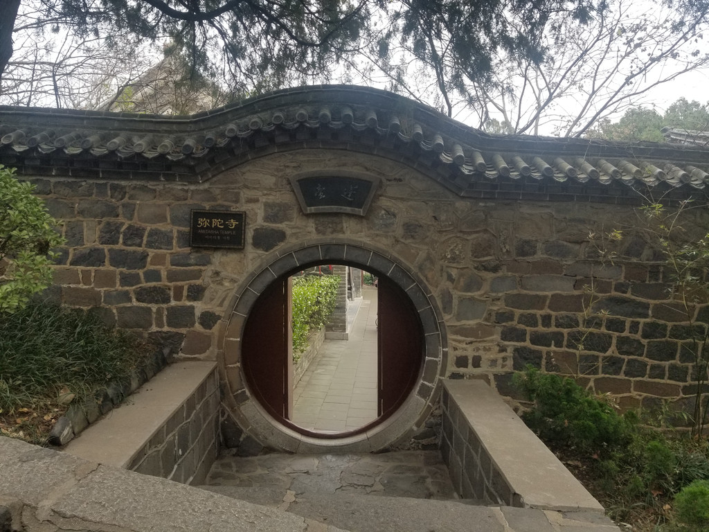 进入景区,顺路而行,首先经过弥陀寺,这也是蓬莱阁中唯一的佛教场所。