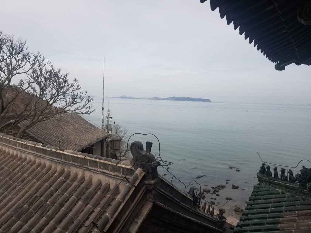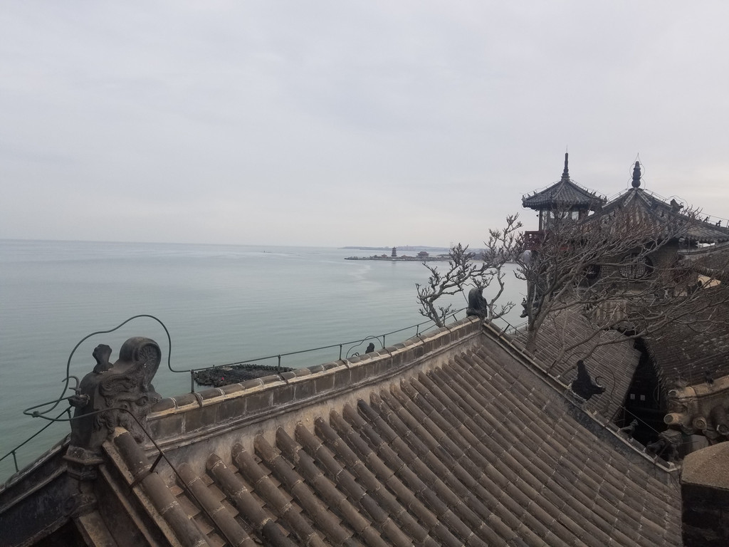可以顺梯到蓬莱阁的,二楼远眺黄渤海和长岛。