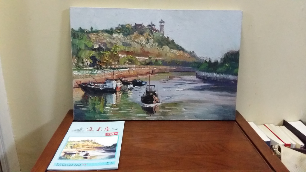 更有现今的文人墨客,站在仙人桥上眺望蓬莱阁,有当代摄影家高远先生的作品,有八十多岁的著名油画家秦大虎教授的油画,还有蓬莱丘山山谷葡萄酒公司的仙界葡萄酒...