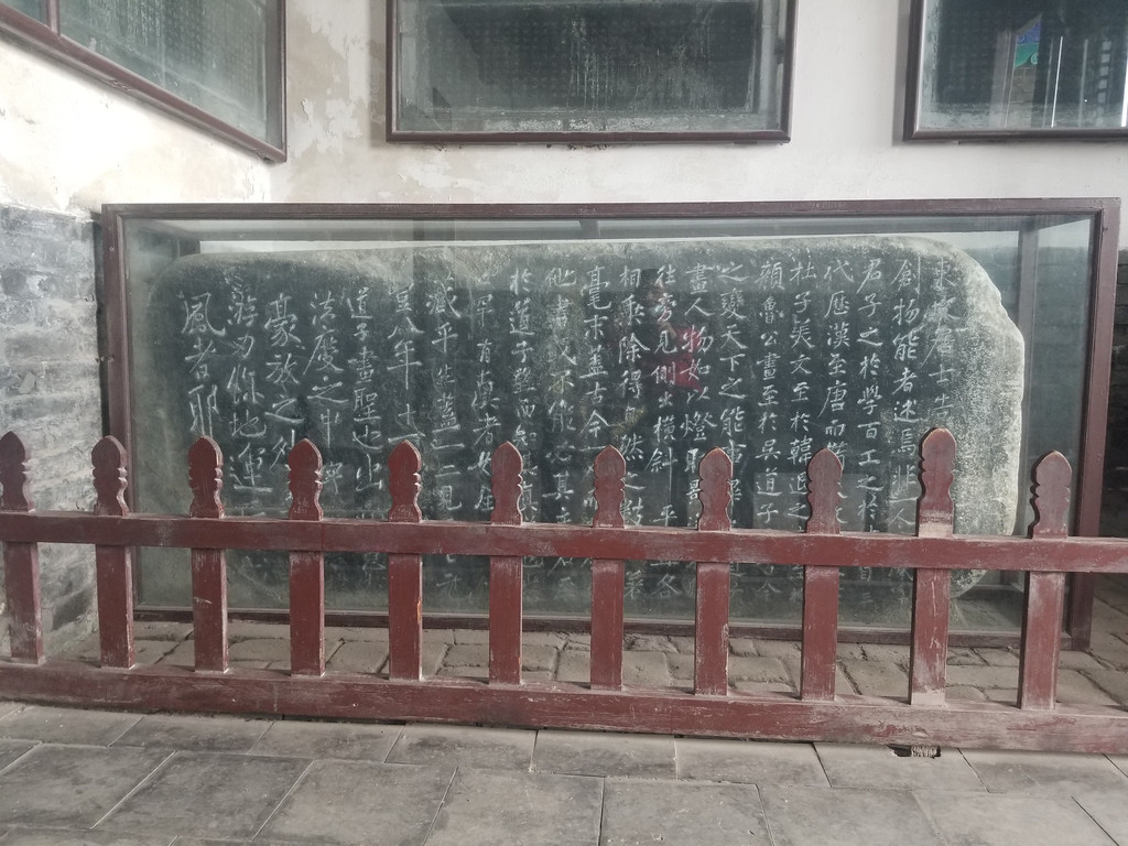 卧碑亭,因厅内的卧碑得名,这块卧碑是北宋大文学家宋东坡的手迹。长217厘米,高92厘米,厚24厘米。卧碑正面刻《题吴道子画后》,背面刻《海市诗》,两件手迹都是苏轼写给河南史全书的。卧碑背面有隶书小字题记,说明此时已非原碑,而是金代皇统年间照原碑重刻。两件手迹都是横幅,刻在横置的长方形碑石上,所以俗称“卧碑”,是蓬莱阁内珍贵碑刻,有着重要的历史资料价值和书法艺术价值。
