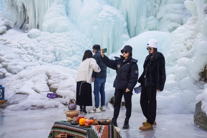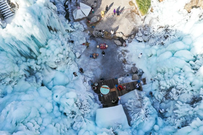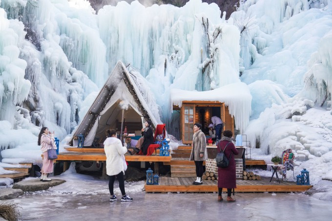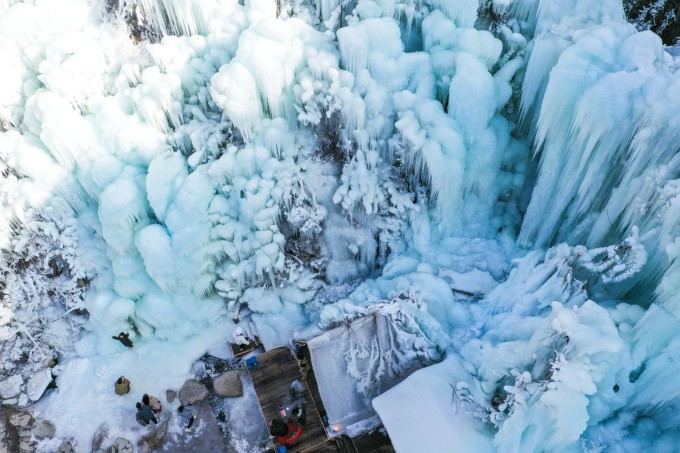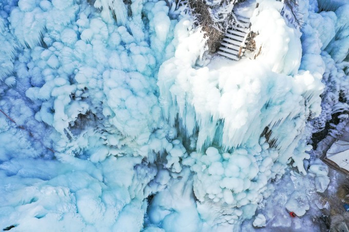 此刻,壮丽的瀑布一改往日的婉约,凝结成洁白的玉带在山间舞动,层层叠叠在百米长的冰瀑崖壁上,到处琼妆玉砌,晶莹剔透,为这个冬天,平添了梦幻与喜悦。