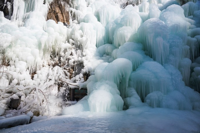 “冰泉悬众壑,云路郁千盘”,冬日的九如山,又迎来了仙境般的冰瀑世界,沿着木栈道拾级而上,踩着厚厚的积雪,一秒便能进入银装素裹的童话世界,现实版冰雪奇缘映入眼帘。