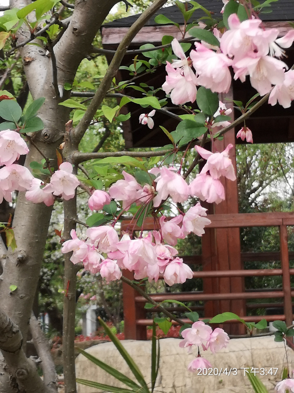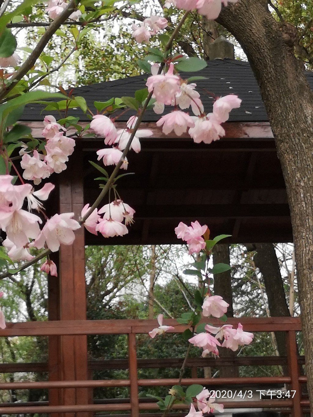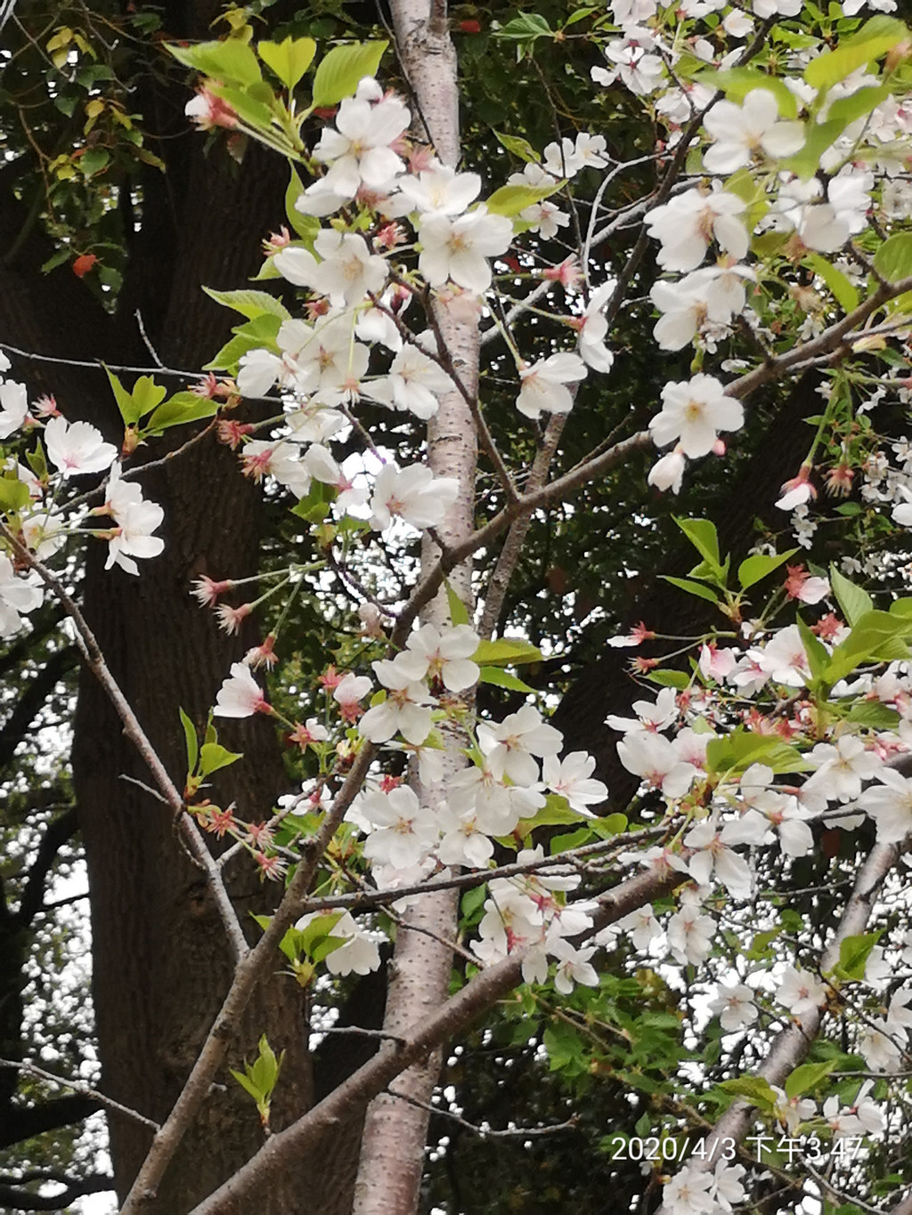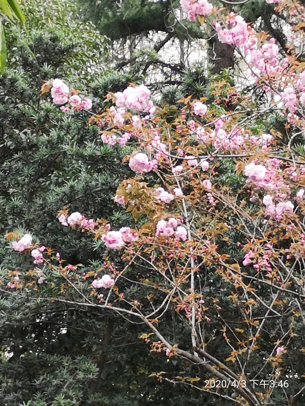 3月22日,与女儿去世纪公园樱花岛赏樱。樱花七日。今天大概见不到踪影了,不料在公园的池塘边,一树樱花正盛开,花瓣落了一地。居桥林带的垂丝海棠已是“强弩之末”,而泾东公园的此刻的垂丝海棠却怒放着,且精神抖擞!除了池塘边的早樱,转了一圈,还见到了始盛开的晚樱。泾园,真有一点神奇!这里,早樱与晚樱同在。虽然是仲春时节,地上的“黄金菊”开得黄灿灿的,一片一片,与头顶上的花构成了季节的呼应。