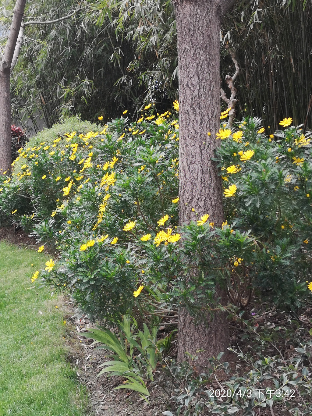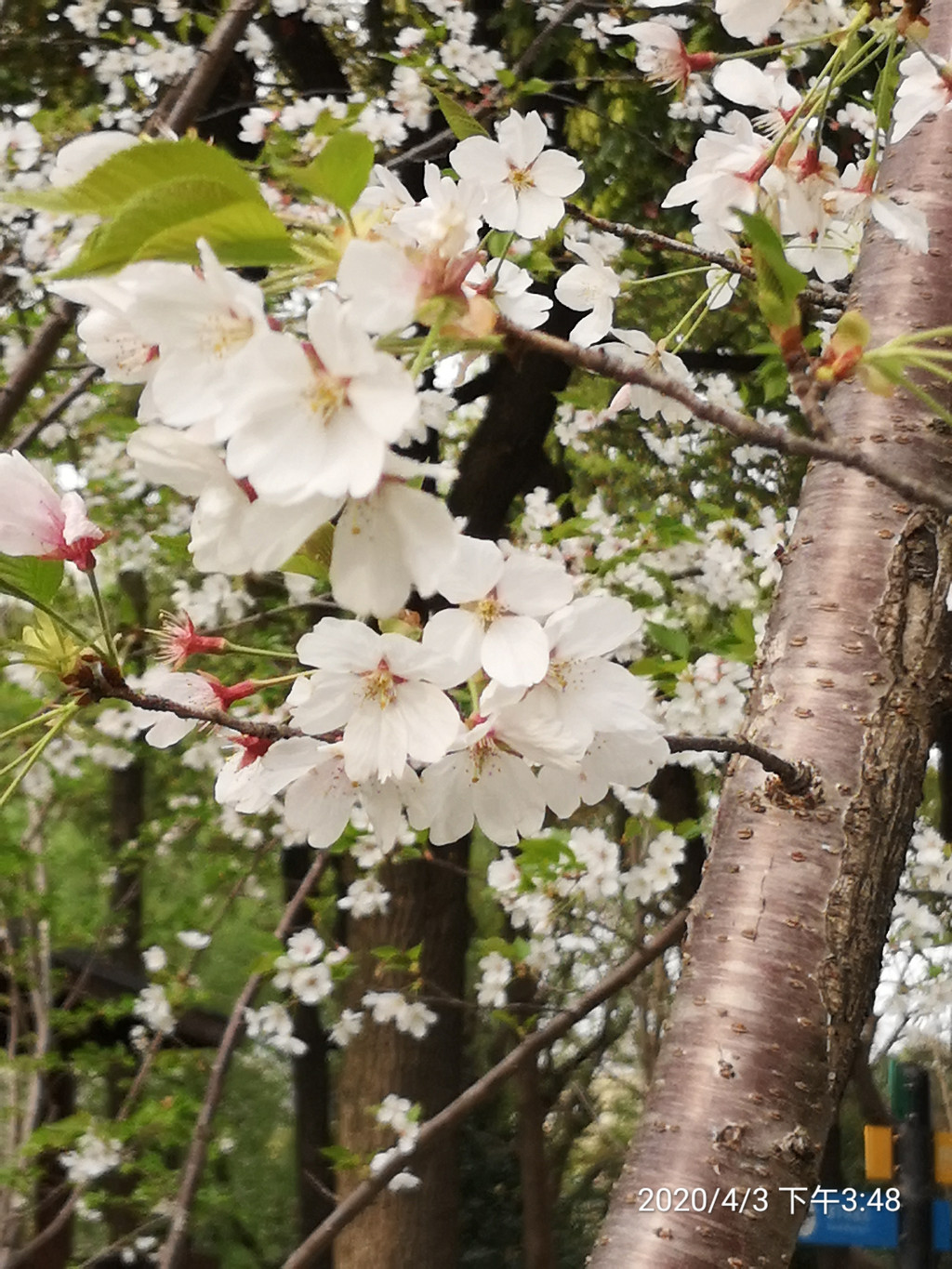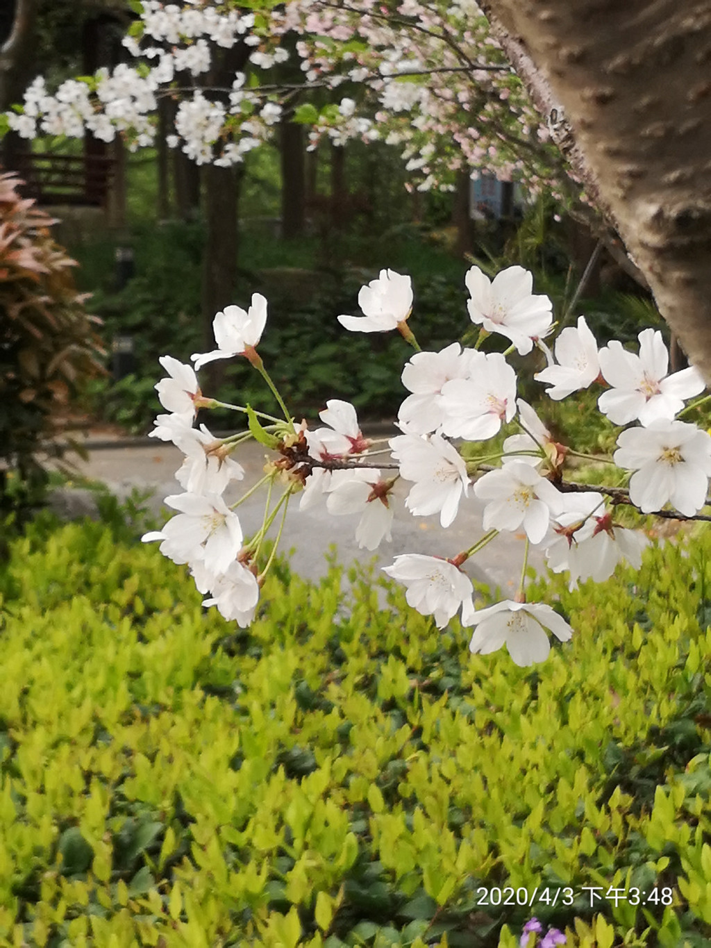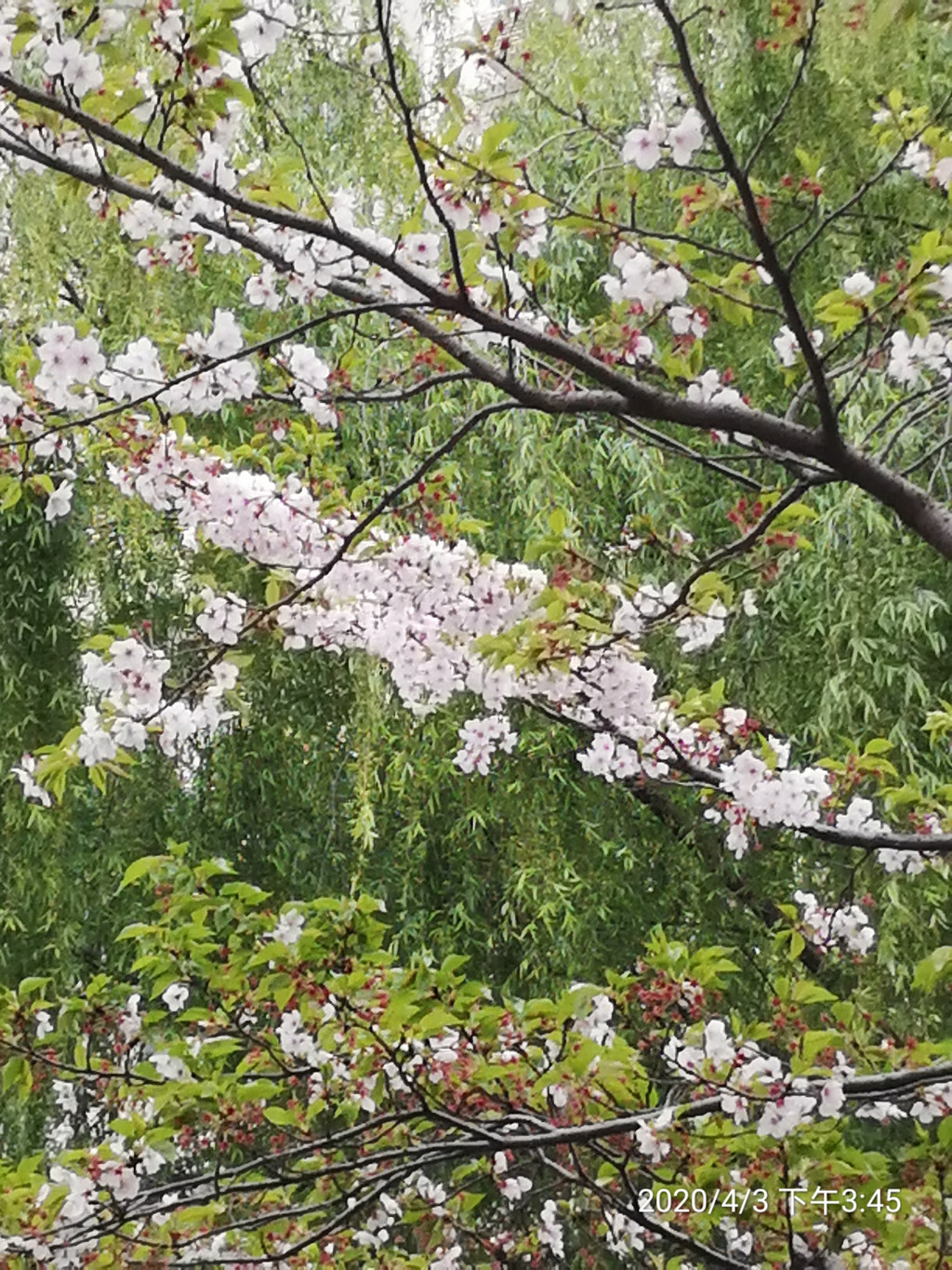 3月22日,与女儿去世纪公园樱花岛赏樱。樱花七日。今天大概见不到踪影了,不料在公园的池塘边,一树樱花正盛开,花瓣落了一地。居桥林带的垂丝海棠已是“强弩之末”,而泾东公园的此刻的垂丝海棠却怒放着,且精神抖擞!除了池塘边的早樱,转了一圈,还见到了始盛开的晚樱。泾园,真有一点神奇!这里,早樱与晚樱同在。虽然是仲春时节,地上的“黄金菊”开得黄灿灿的,一片一片,与头顶上的花构成了季节的呼应。