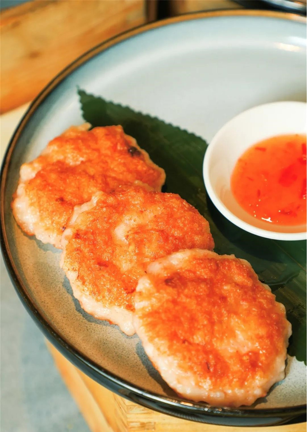 秘制虾饼,又是豪横界的代表!100%纯虾膏+1只完整虾仁,带来铺天盖地的满足感。现煎现吃,直到两面金黄。掰开还有一颗完整虾肉弹出,惊喜猝不及防。