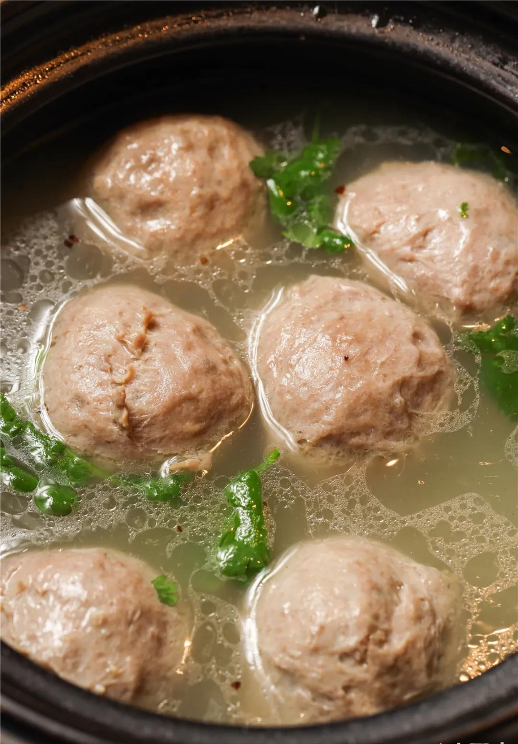 《食神》同款乒乓球牛肉丸,店里的牛肉丸是人工手打出来的,与机打相比,外表会有一些凹凸不平,形状也是不规整的。一口咬下去还能看到类似蜂窝眼的大小气泡!咬起来格叽格叽的,超弹牙~