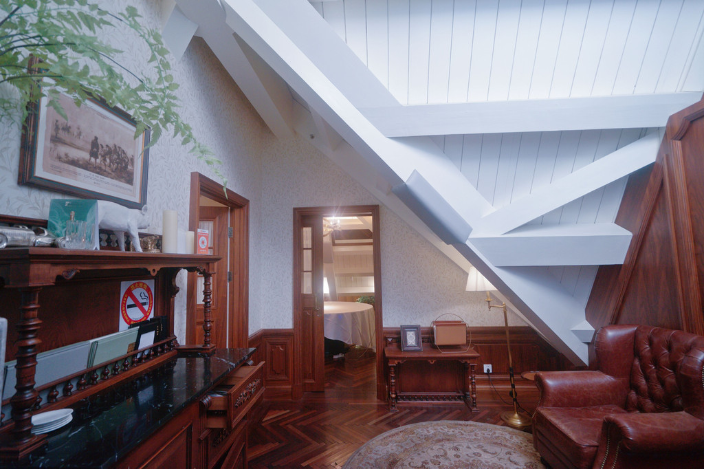 旋转的楼梯、沧桑的地毯,拾阶而上,仿佛穿越时空,重回上世纪的旧上海。