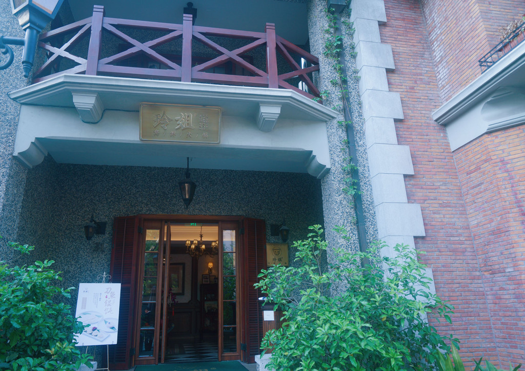 位于思南公馆的独栋别墅,餐厅名字“玲姐”跃然门上,霸气的直接占据一整栋楼,还是名人居所(原宋氏三姐妹之一的宋霭龄与丈夫孔祥熙的住宅之一),自带独立花园的小洋房,从外表便能感受到海派文化的气息。复式人字屋顶,红瓦铺盖,黄色墙面,原木色漆大门,气派非凡。推门而入,复古怀旧的装修气息拂面吹来,一楼有郑恺一家充满回忆的老照片,还有目光所及之处必有不少“老物件”,尤其是这款老古董价值不菲的留声机。