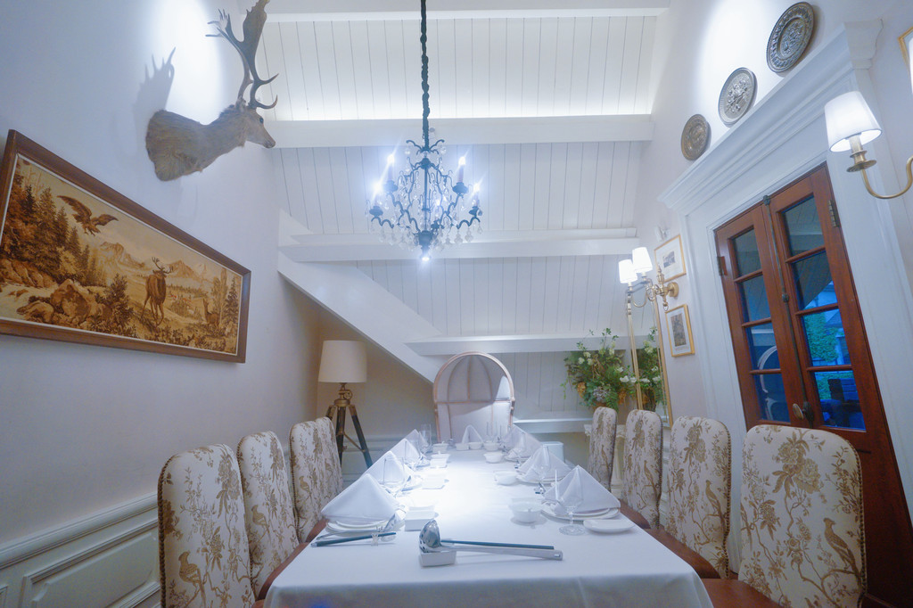 餐厅一共有7间各具特色包房,其中最大的一个包房,能容纳八人左右同时用餐,与。除此之外,一和二楼也有散座。方便两至四位好友一同前来的选择,就餐环境感也毫无逊色。当你在这用餐,你会发现除了每间装饰别具一格包房外(清幽雅致、西式简约、崇尚自然等环境)露台也是一大亮点,与建筑本身的浓重历史感相得益彰,烘托出幽静情调的氛围,让你置身于浪漫而温馨的时光留恋无穷。