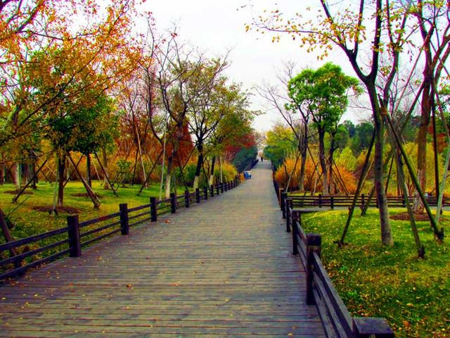 湿地公园还有具有江南水乡风情的“万竹园”,这里是公园的南园。万竹园以“竹文化”为主题,拟造了一个“江南竹韵、清清通幽”的秀丽竹景。竹园地势起伏、青冈林茂、清溪悠悠、小桥流水、翠竹松香,形成了一派“日出清清秀、月照清清影”的竹趣盎然的自然风光。竹园主体建筑呈明清格调,与小桥流水相映衬,似有来到江南水乡的美感。