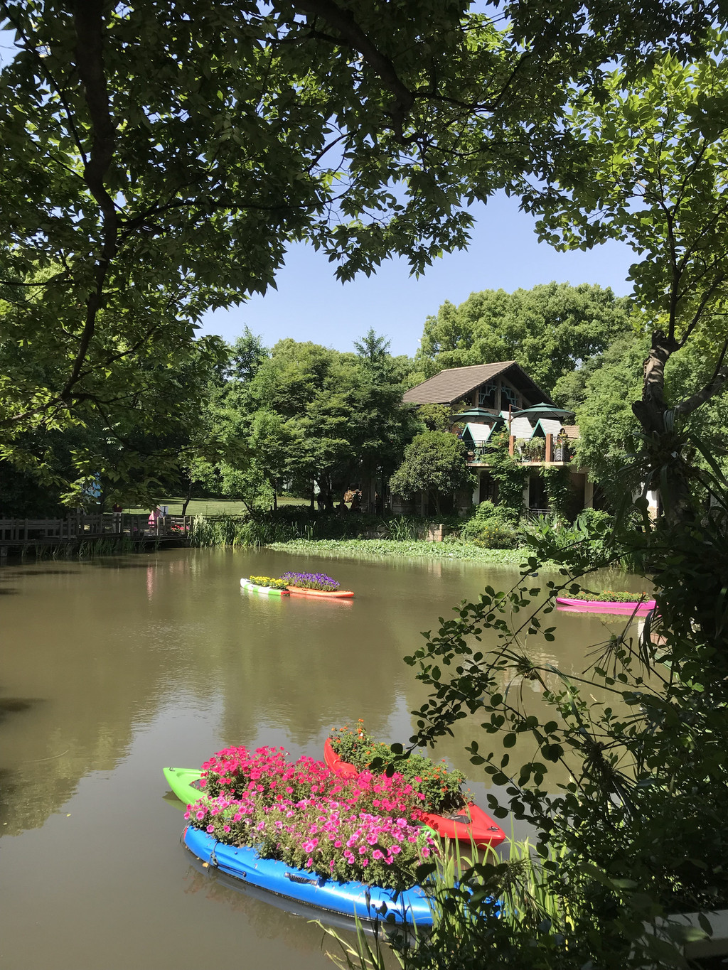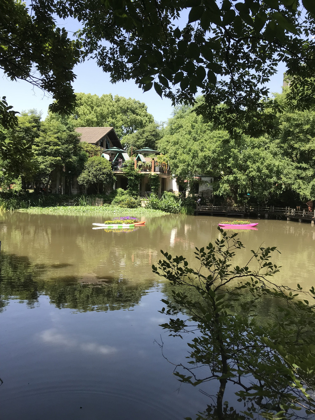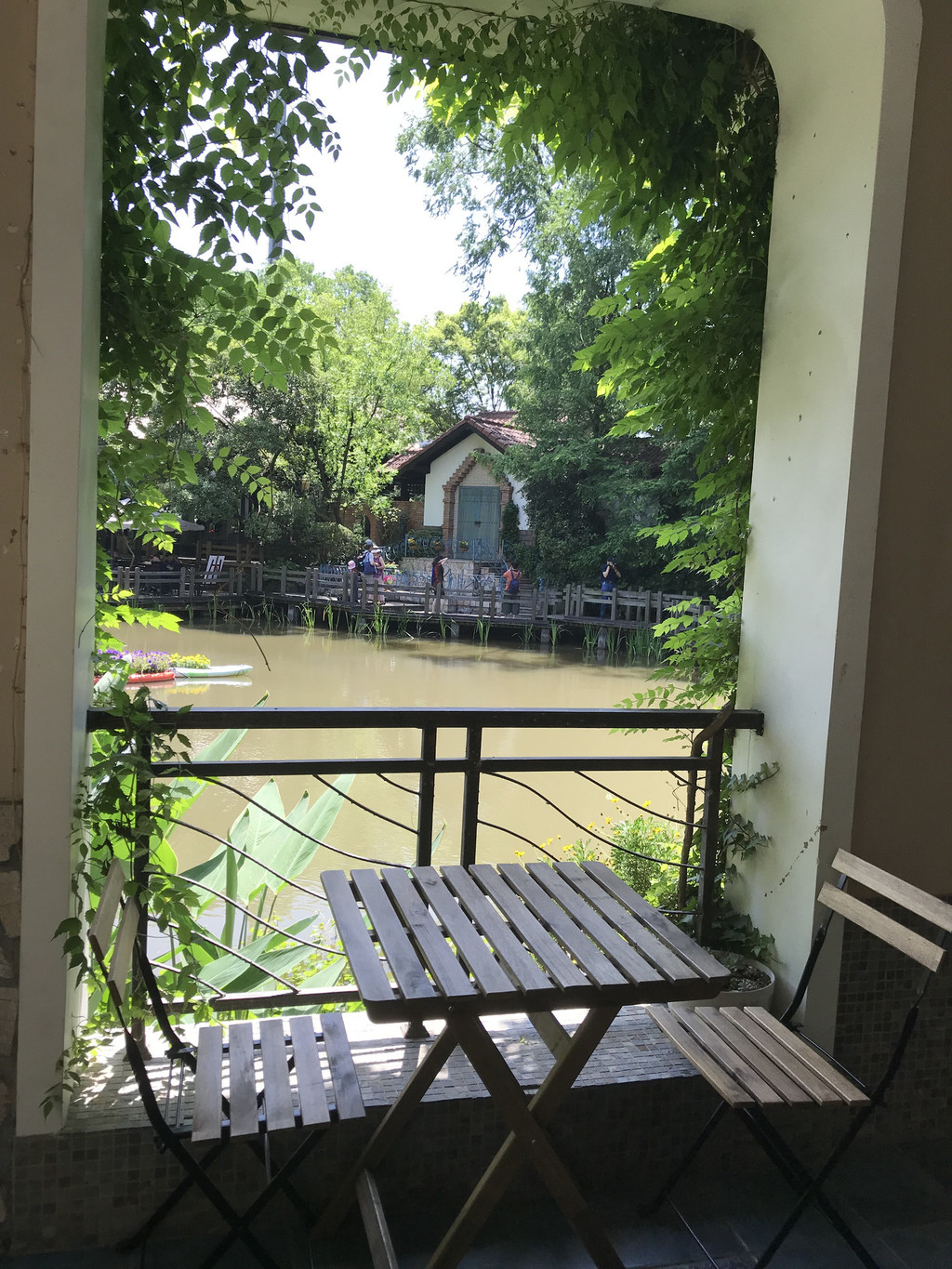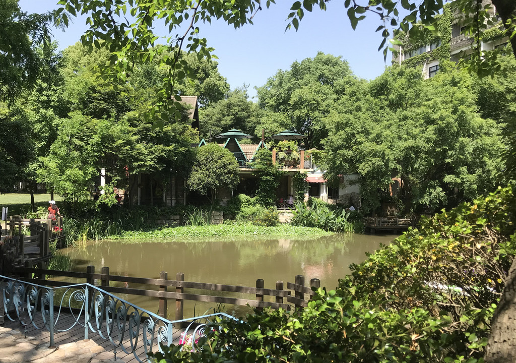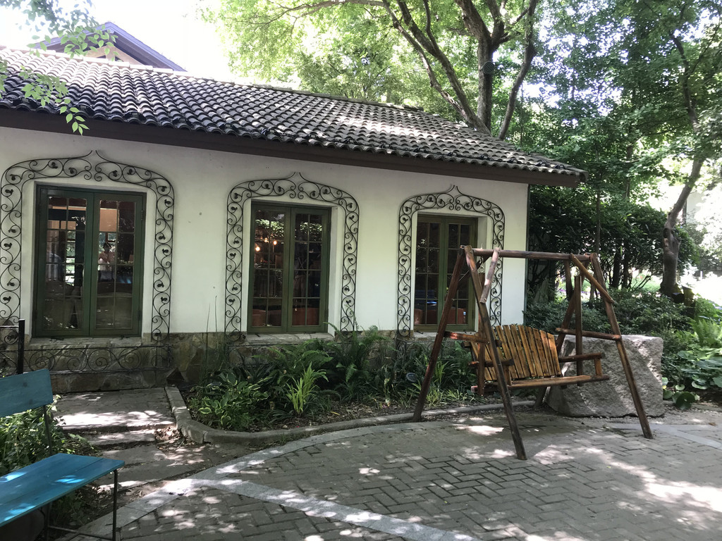 曼陀咖啡馆可说是园中的一道风景,面对草坪边靠着湖,坐在这里喝咖啡欣赏湖景,却不知对面的人早已把这里摄入了镜头,怎么看都是美。