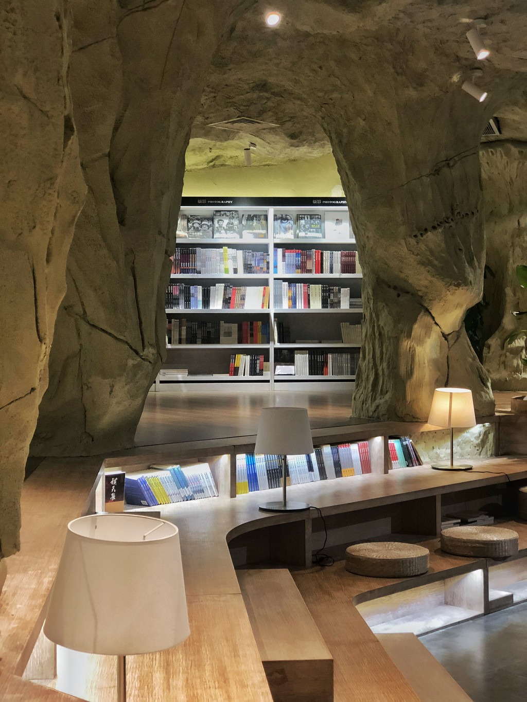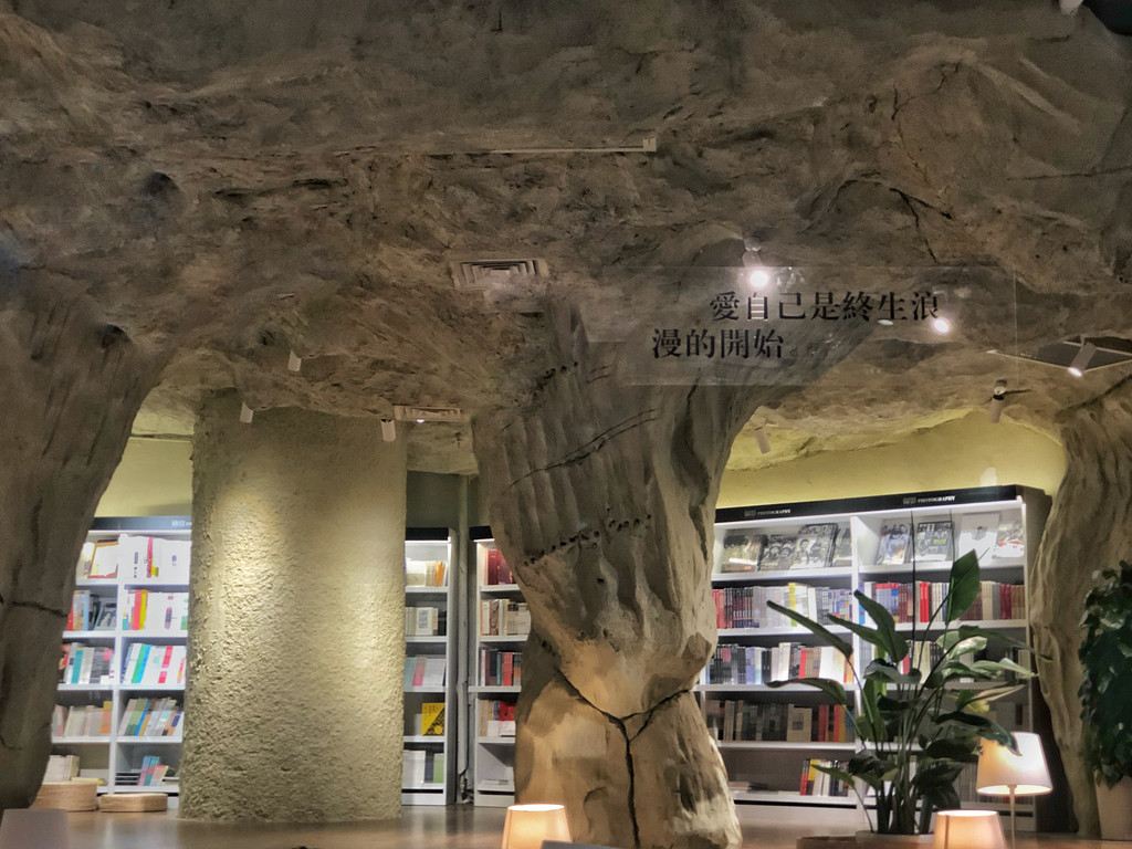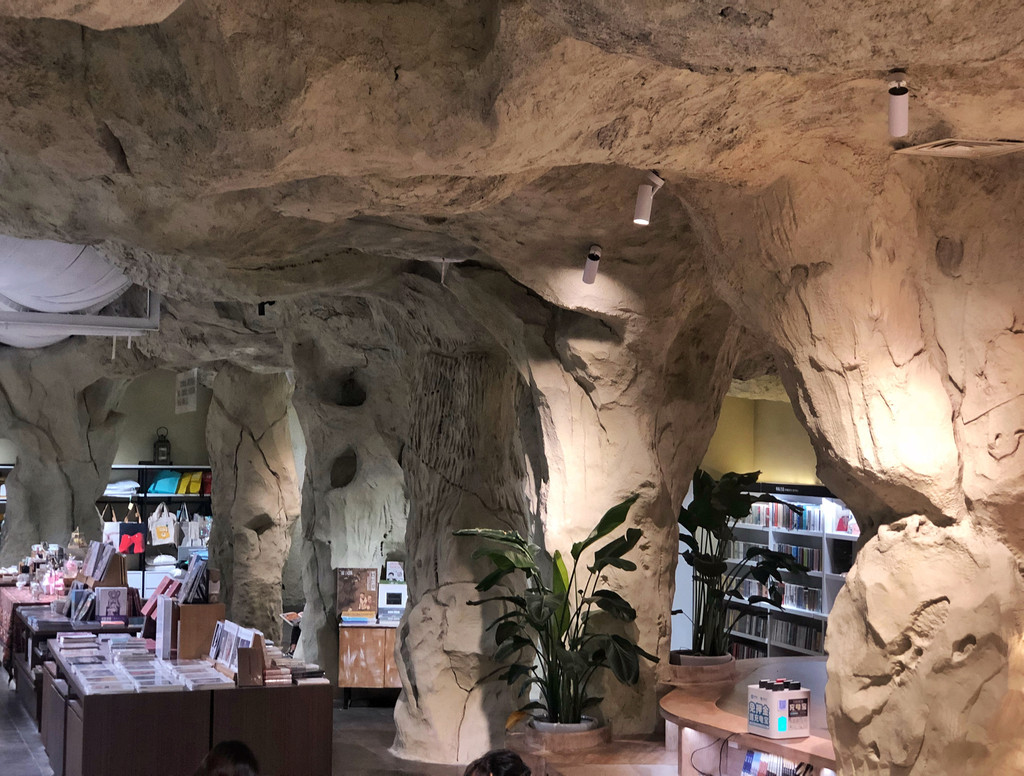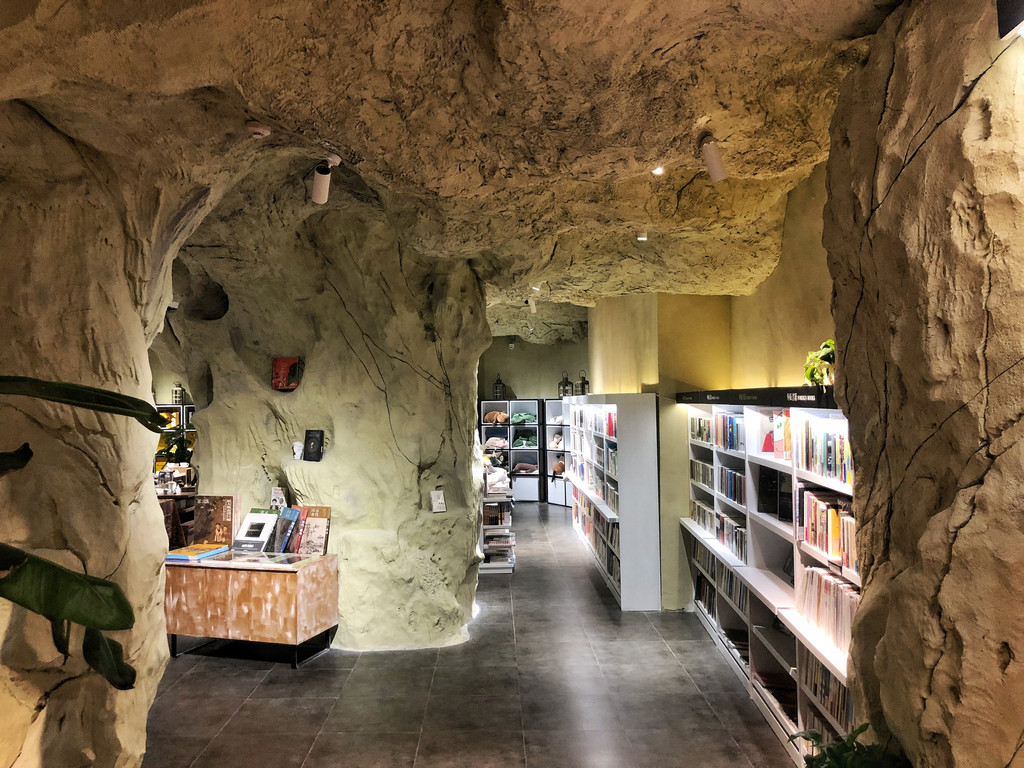 书店深处,还隐藏了一家名为地理学家的咖啡厅,延续了书店岩洞风格,像是一个避世空间,身心都得到了放松。