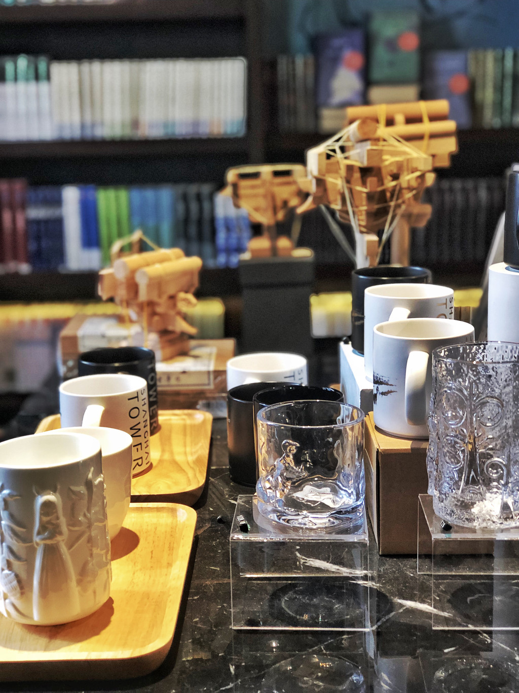 每个版块都是一小方天地,舒缓的音乐,柔和的灯光,很容易静下心来。这家店藏书很多,书店还售卖艺术品、文具、茶具、有意思的瓷器等。