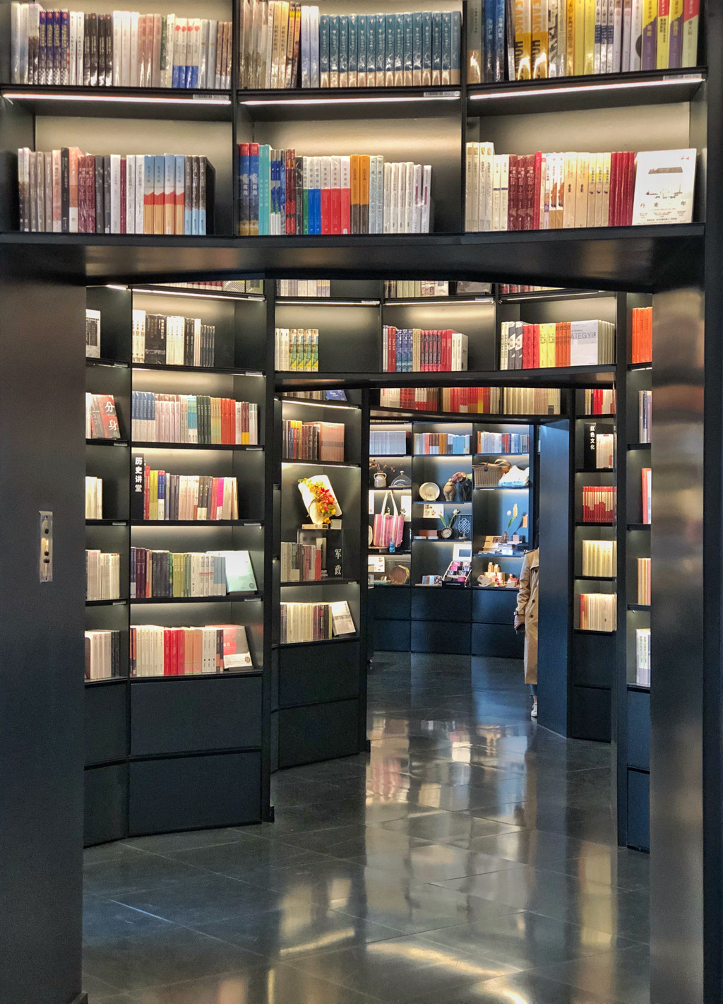 在上海拥有多家分店,本次探秘的是上海陆家嘴正大广场分店。该店以“CITY”为抽象的概念内核,身处闹市而剥离闹市,进入黑标店,读者仿佛置身一所沉稳而有温度的城市书房。黑标店的主色调是“黑色系”,同时采用点光源照明,代表这家书店对城市生活的双重呼应。这家书店既是沉稳冷峻的,又是温暖亲近的。