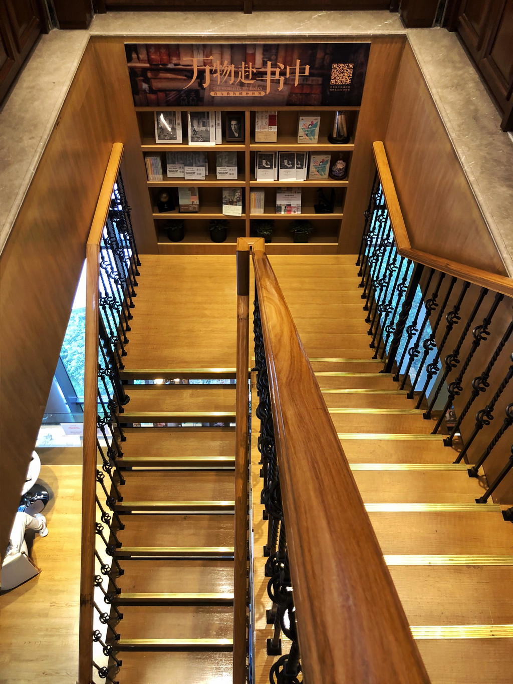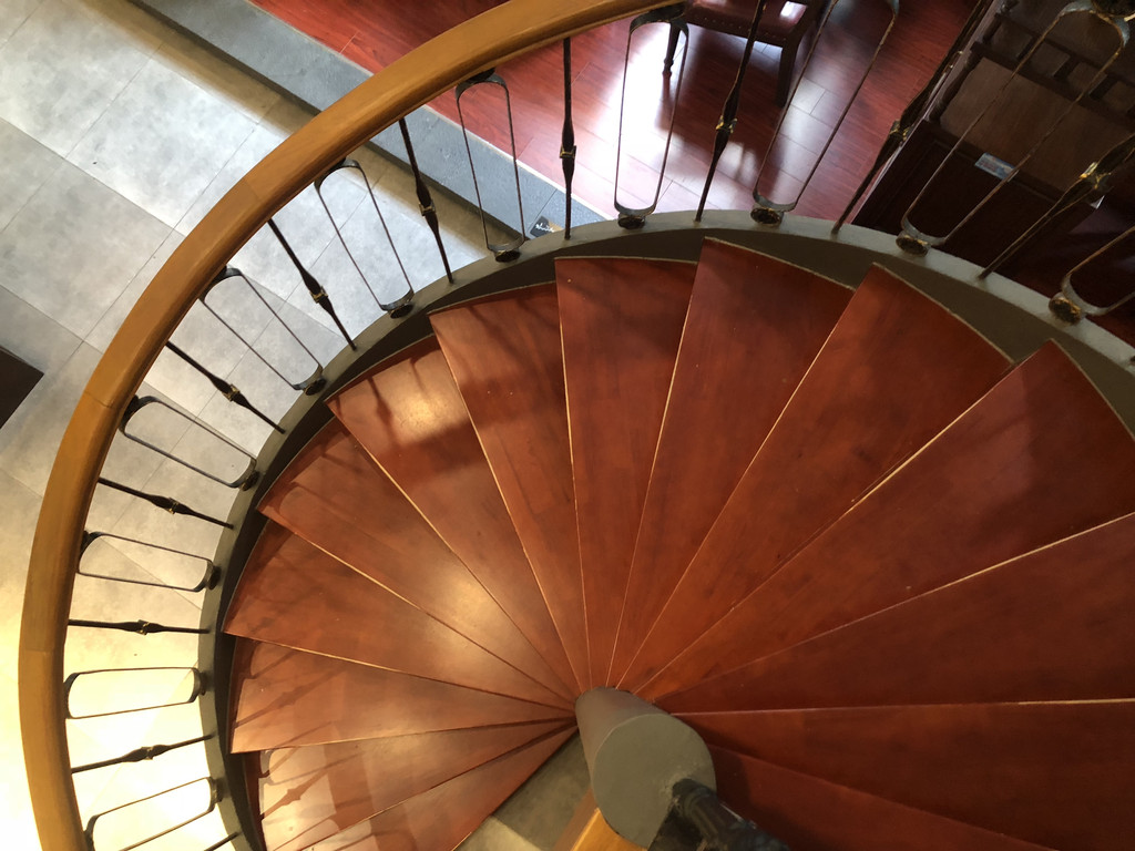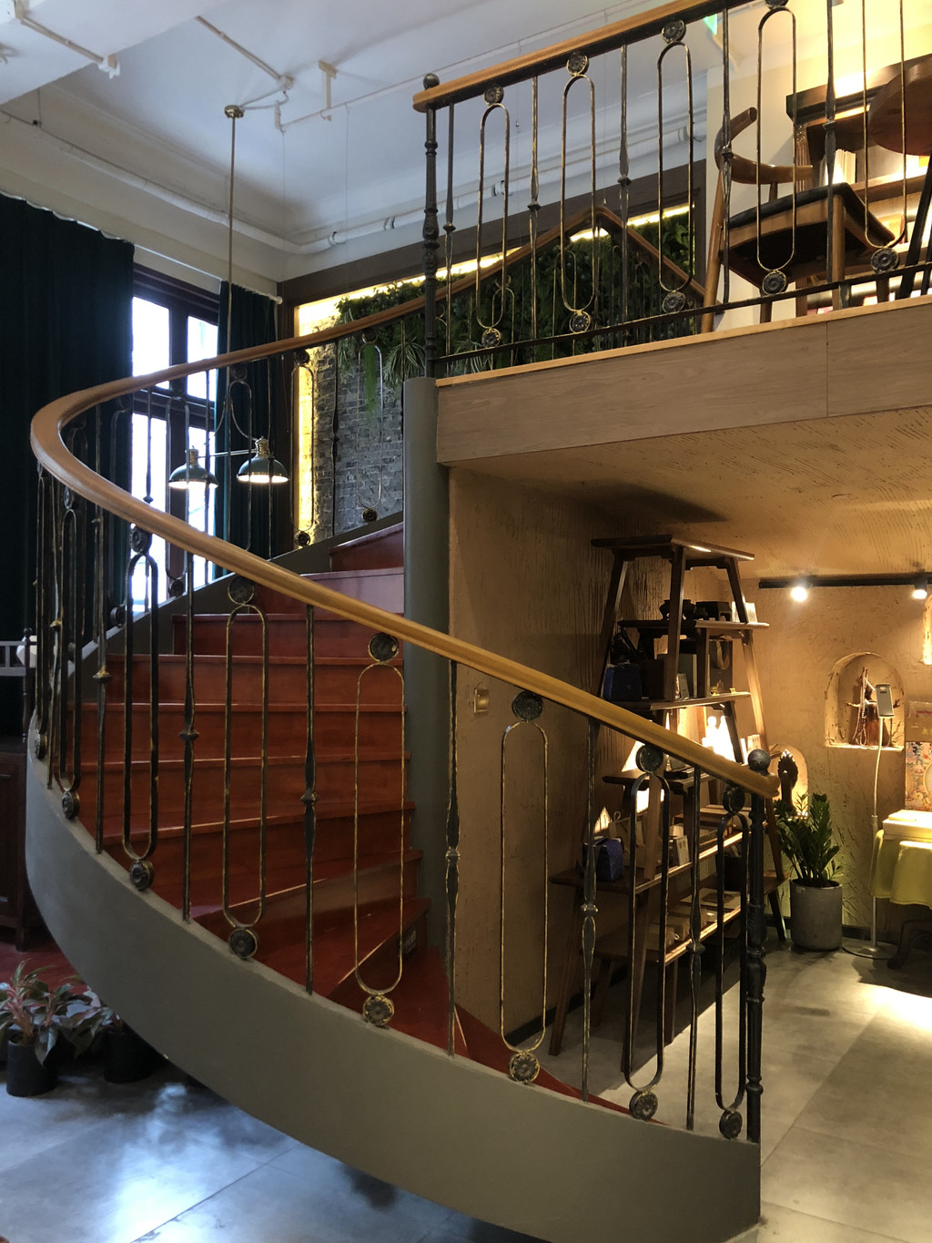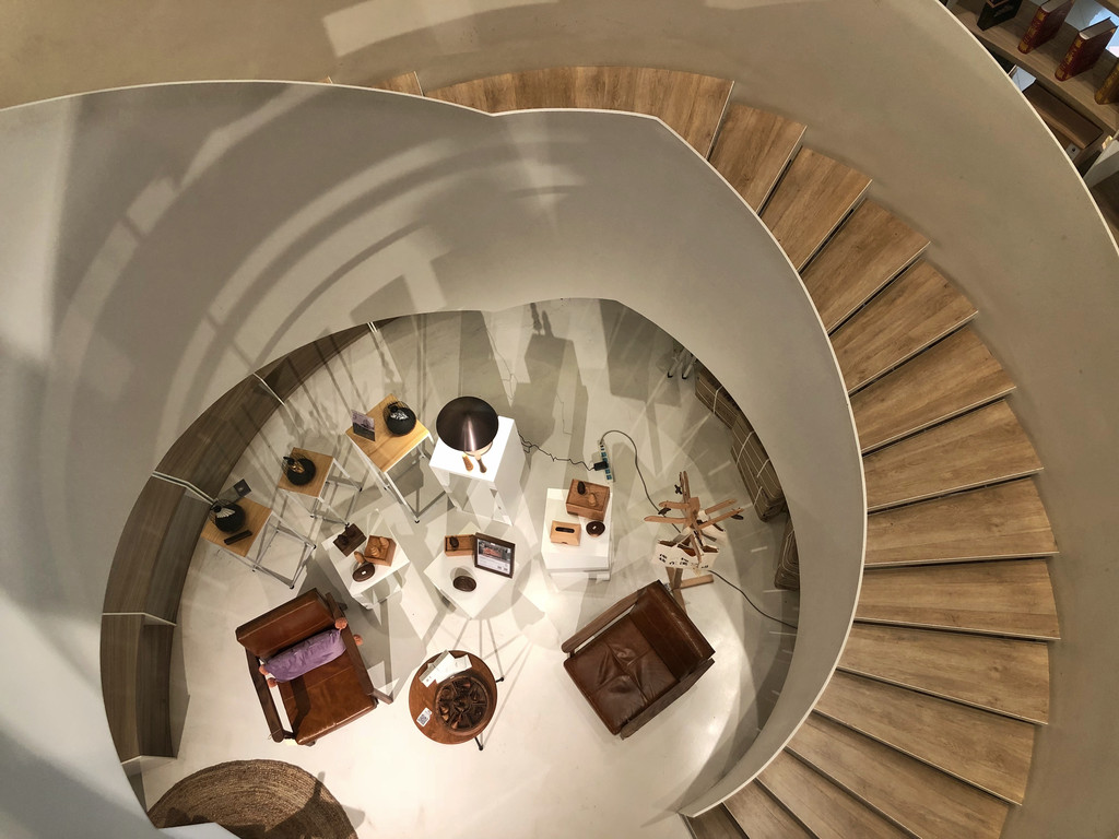 旋转小楼梯颇具民国特色,书店特意辟出了这块地方,从选品到家具灯具的摆放都融入了十足的民国风情。