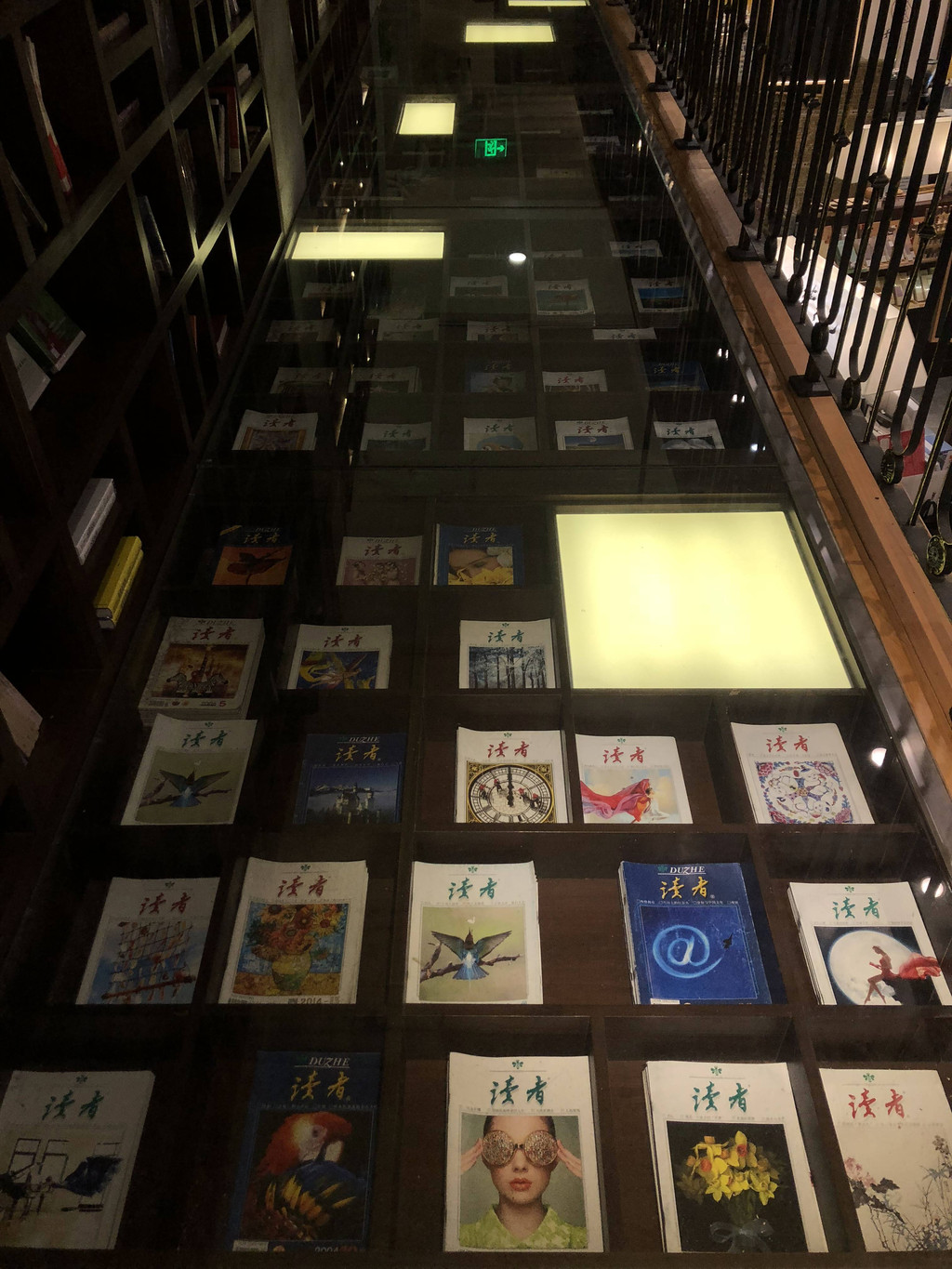 书店二层的杂志桥是书店的一大特色区域,不同年代的《读者》杂志在桥上铺展开,呈现出一帧帧被定格的时光。
