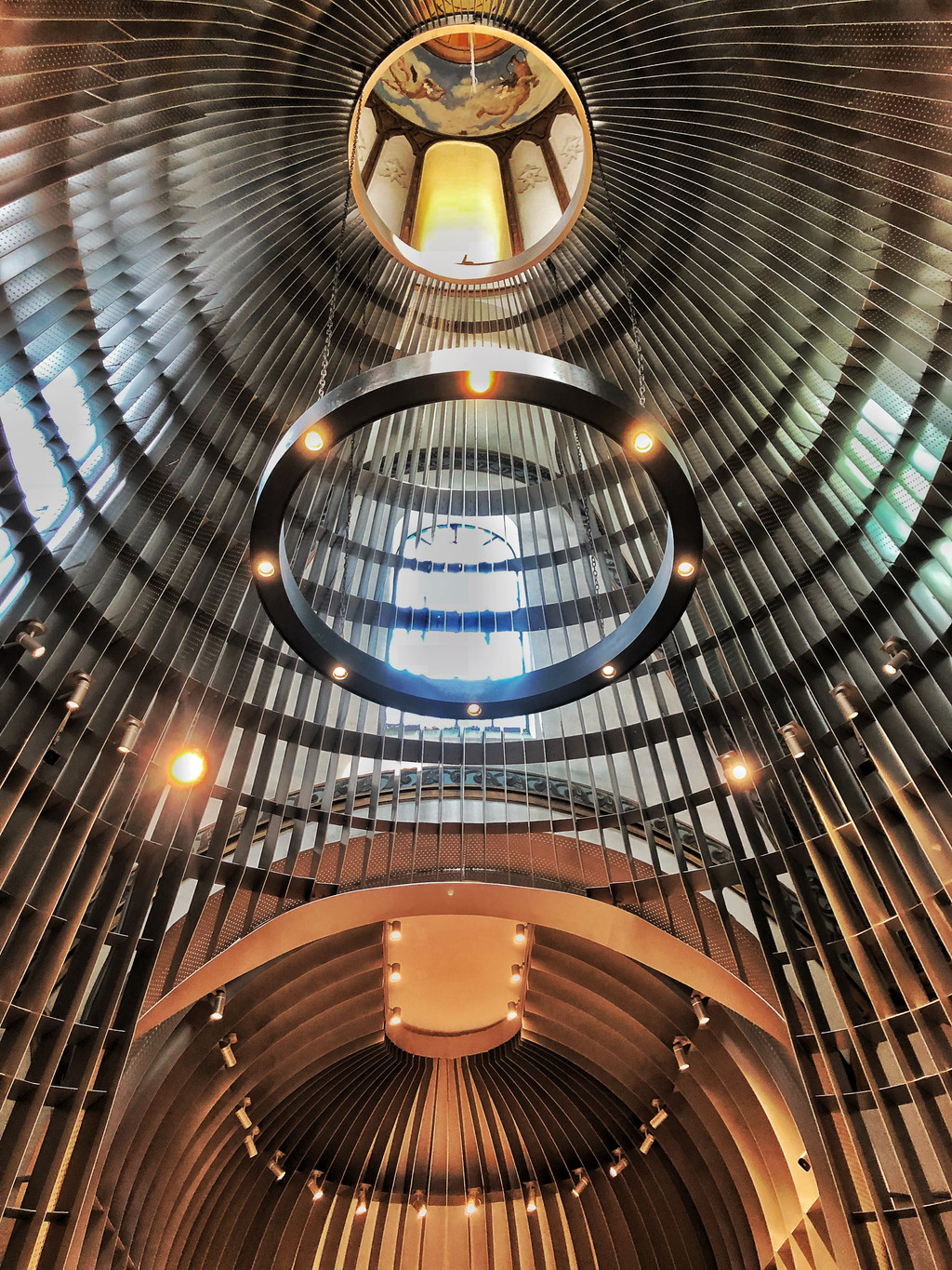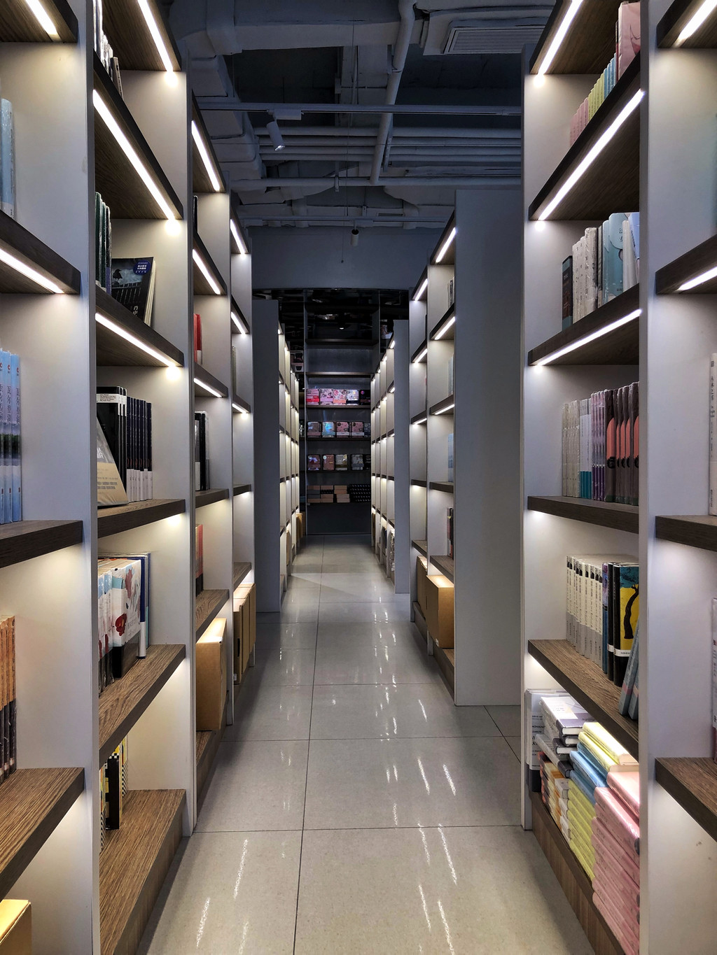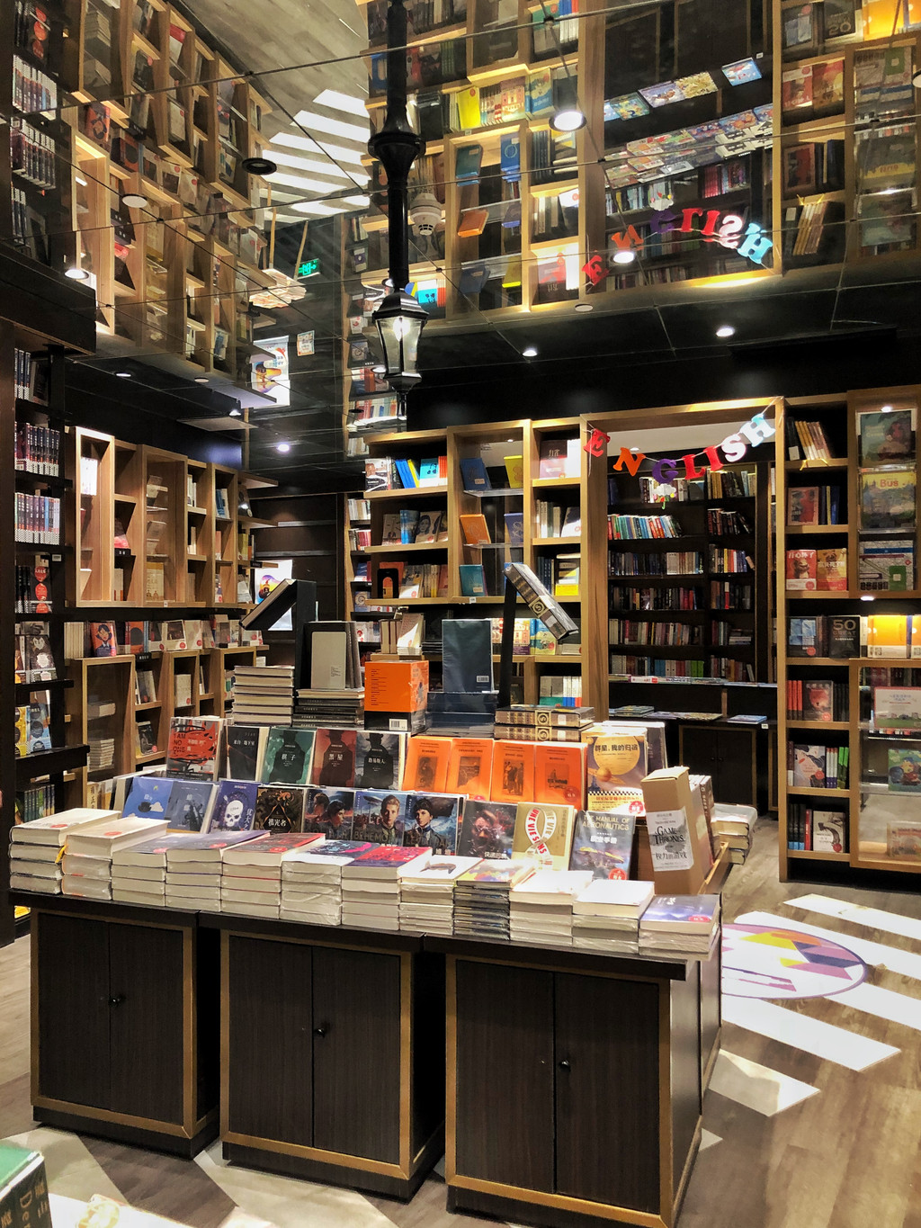 巧妙运用镜面,真是美得让人错乱,在这里拍照都会有一种空间错落的美感,仿若置身于“盗梦空间”。书架林立在两侧构成了巨大的书籍长廊,就像一条无限延长的路,给人强力的震撼感。