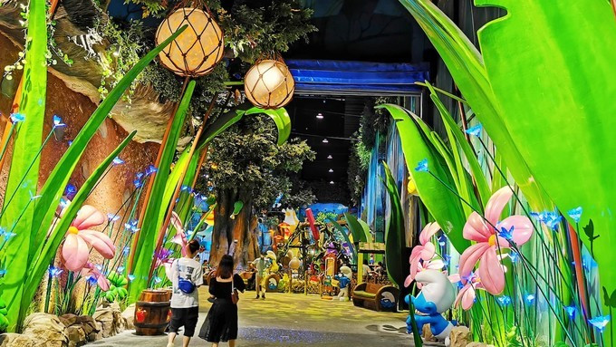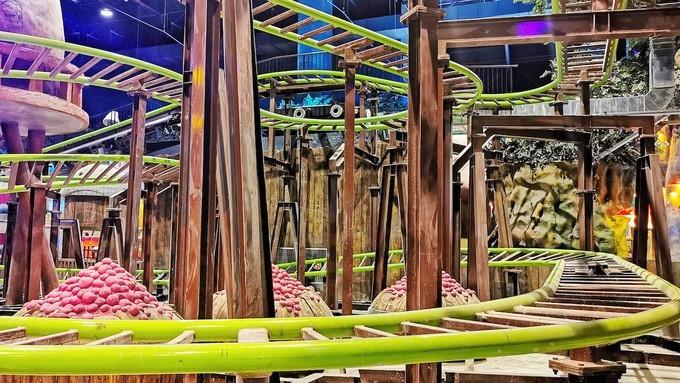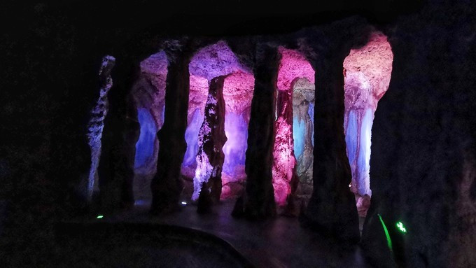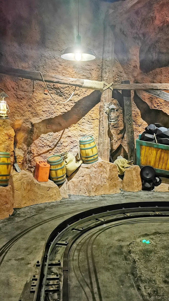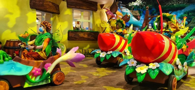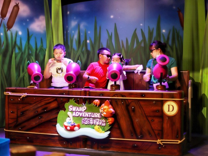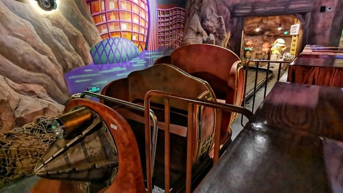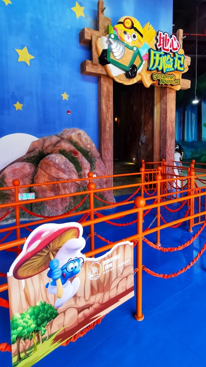 蓝精灵乐园里还有一个探险区域,我们专门去体验了一下地心历险记,进入地心里面,有很多关于地心地质之类的科普内容,通过灯光投射呈现在我们眼前,特别好玩的是这个进入地心的矿车可以360度转动的,在里面来回穿梭转动还蛮有趣的。