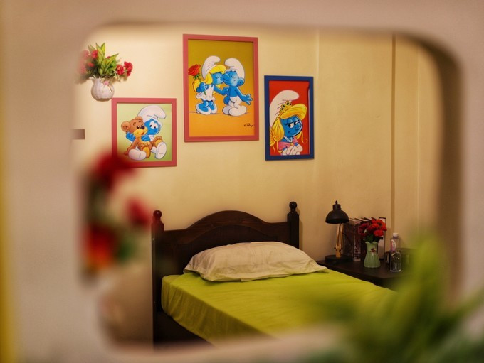 就为了跟蓝精灵拍照,也是在这里花费了很多时间,各种找角度,一会儿捏捏他的小脚丫,一会儿跟他对视对视,一会儿跟他握握爪,一会儿戳戳他,一会儿亲亲他,错位拍照也自嗨地不要不要的。