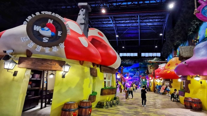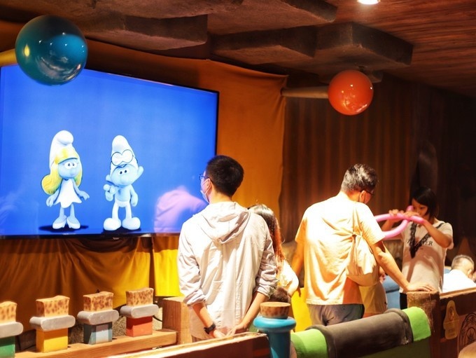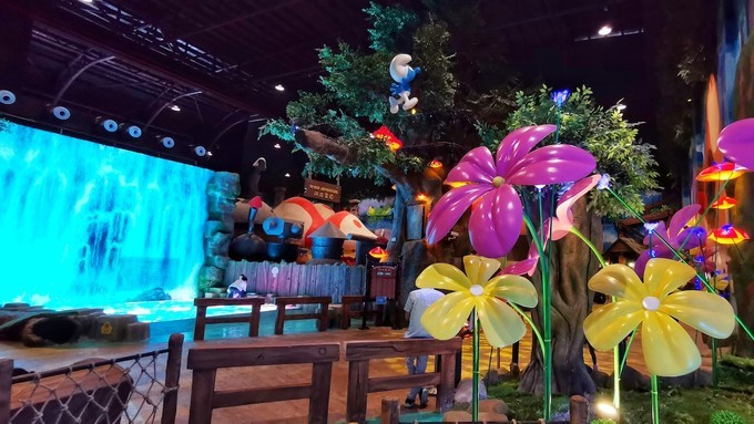 走进蓝精灵乐园,就被这里浓浓的蓝精灵主题包围起来,有森林区、村庄区、格格巫的家以及户外区四个区域,来到这个奇幻世界,我们忍不住先逛了一圈拍拍照片,再安心好好体验各种娱乐项目。这里面就像宣传的一样,整个场馆就是以蓝精灵动画中的场景而设计的,园内游乐设施的命名、体验,以及互动方式,都紧密与蓝精灵结合,走在场馆里,一不小心就以为自己也是蓝精灵家族的一份子。