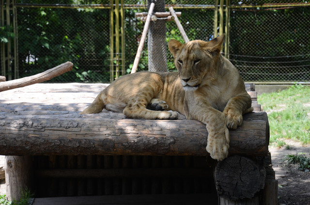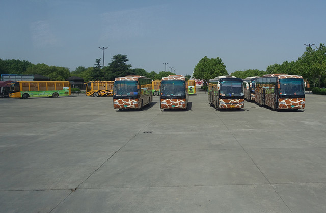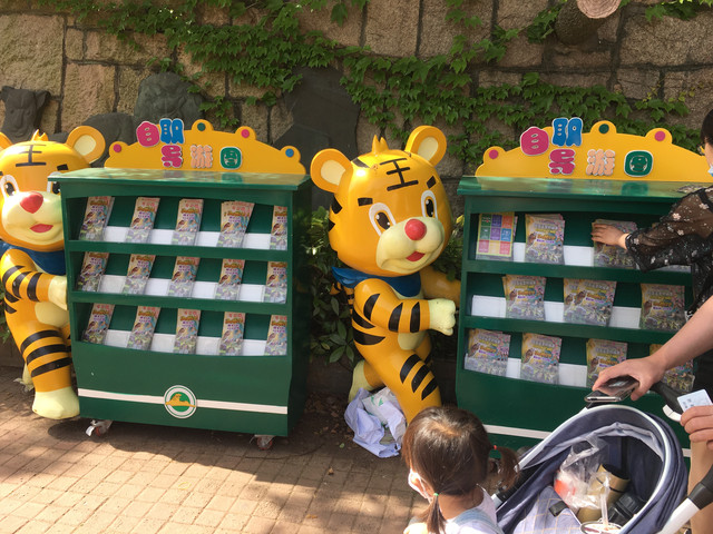 坐上这种免费大巴就可以进场参观动物啦,只不过被关着的是我们人类,哈哈~~还有投食车可以选择,除了购买投食车票,喂食还需另行自费的。各种动物们分门别类的分布在不同的区域,每入一个区域需要打开2道铁门。一路上家长们看到动物就会和孩子们解说一下,有些动物在车子附近的时候,司机也会作适当的停留,好让游客好好欣赏一番,这时候家长和孩子们都会兴奋的欢呼:“看狮子走过来了;那边河里熊在游泳;看,前面有只白色的老虎哦……”整个行程中游客们都比较兴奋的,满车都是欢声笑语一片。