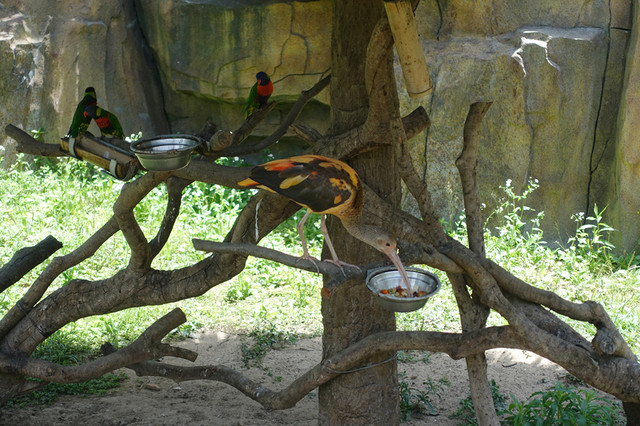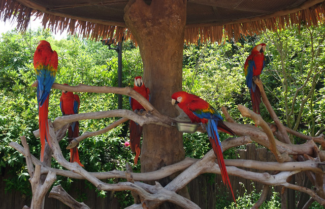 开始逛步行区。 大道上的金刚鹦鹉讲解,鹦鹉会展翅飞翔。