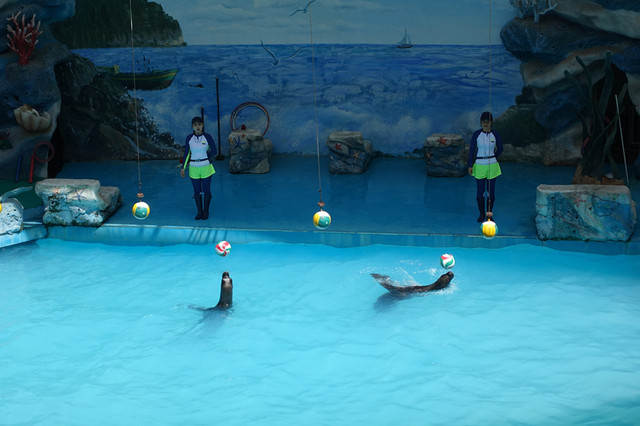 每天13:00在百兽山广场里有各种动物们的表演,每天就一场,因为参与了喂食所以就没去观看。溜达到了企鹅馆,正好是企鹅讲解的时间,看着企鹅欢快地在水中畅游,听着讲解员的介绍很不错的。