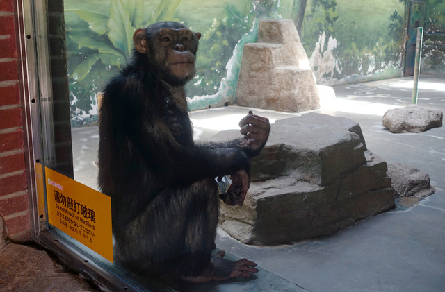 沉思中的大猩猩,坐着的高度和人坐着的高度差不多了,随便你们怎么拍,它也不躲闪。