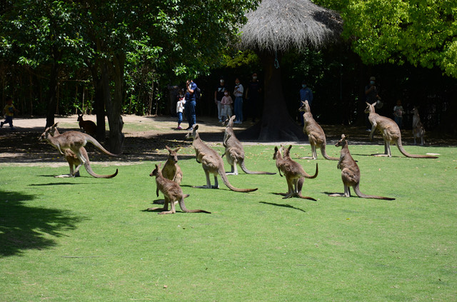 投食区会配发一次性手套和消毒液,袋鼠投食只给了4颗,友情提示一颗颗喂,他们吃的太快啦,忽然袋鼠们都涌入了草坪,呆萌的站立在游客们的身边,我走在他们之中的时候非常小心的避免踩踏到他们长尾巴,可惜惊喜中忘记拍视频了,也忘记去仔细观察一下袋鼠哪个自身独有的袋子了,哎可惜了~~~