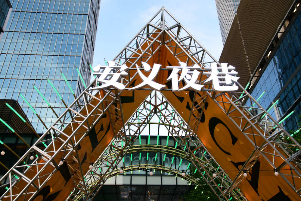 推出首届夜生活节,不去看看有点过不去,选择安义夜巷和圆明园路。安义夜巷位于位于南京西路商圈安义路,全长仅264米。