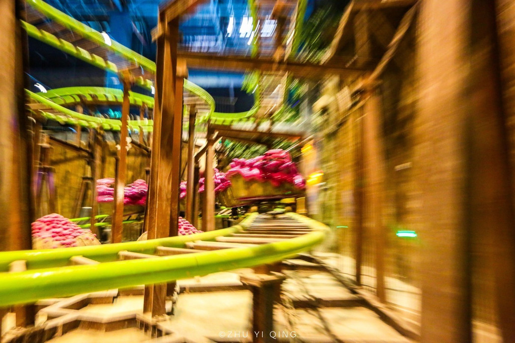 谷木游龙是中国第一架木质过山车,而且整个轨道基本由木头构成,蜿蜒曲折,过山车穿行其中,过山车就像一条龙游荡在山谷间,因为是欢乐谷人气最高的项目,来谷木游龙排队的游客非常多,所以进园第一个项目就是抓紧时间来谷木游龙排队。
