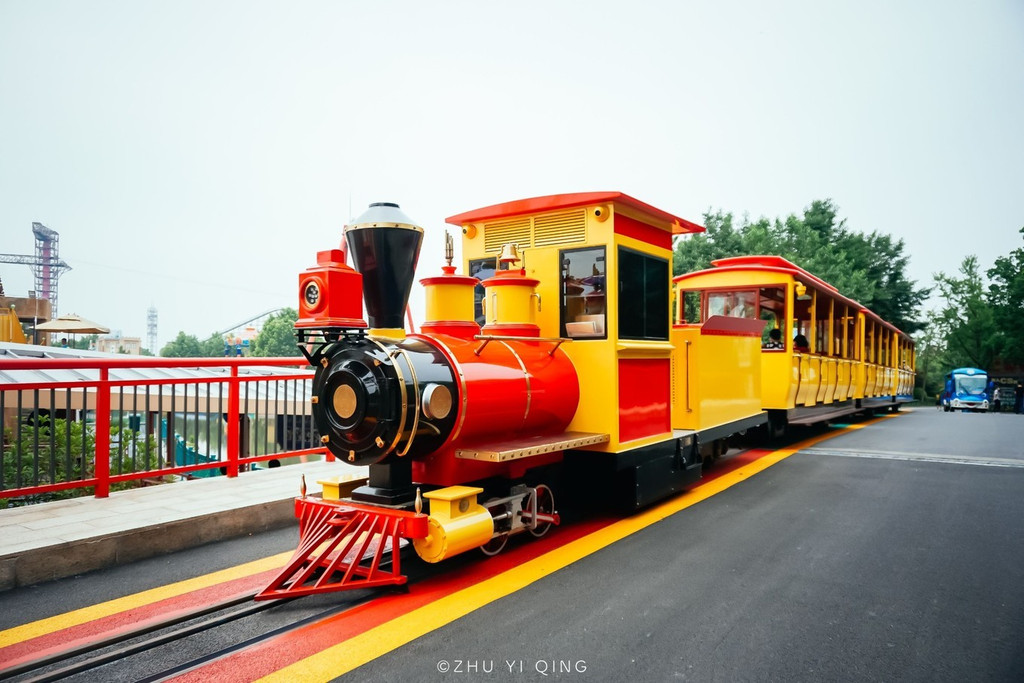 上海欢乐谷位于松江佘山国家旅游度假区内,一共有七大主题区:阳光港、欢乐时光、上海滩、香格里拉、欢乐海洋、金矿镇和飓风湾,欢乐谷可以说是上海最大的游乐园之一,光是一天可能也玩不够,所以走累的时候可以搭乘园区里这种小火车。