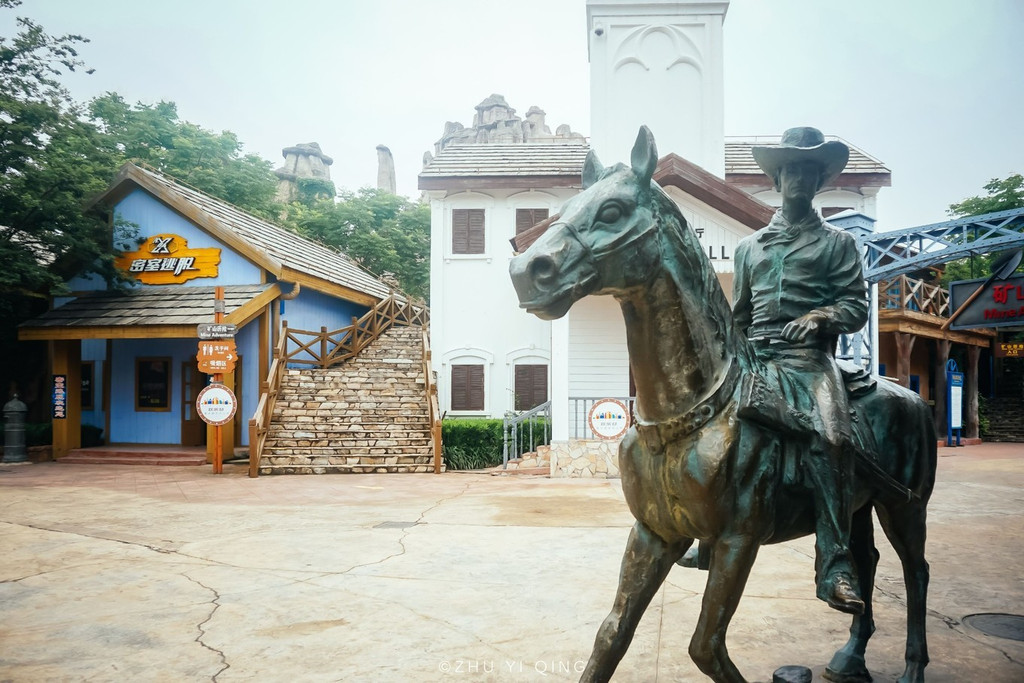 金矿镇主题园区则是以200多年前的北美金矿小镇为主题,园区里有废旧的火车、简陋的住房、老旧的淘金机器、矿洞、塔架等建筑,来到这座主题区,就是开启一场淘金之旅,在这里还有一座瞭望台,可以看尽整个欢乐谷的全貌。