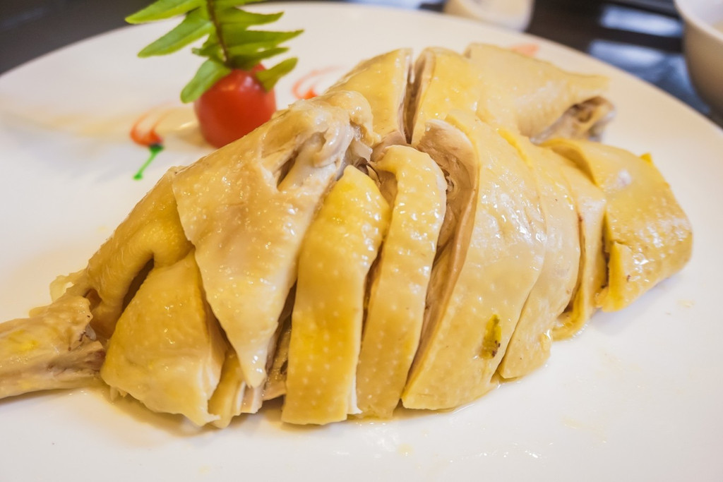 白切鸡的味道非常鲜美,可以蘸酱油,也可以直接吃。