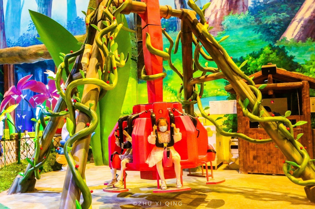 蓝妹妹花园,听名字就非常小清新,连游乐设施的座椅也是花朵状,一上一下温和的律动,非常适合小女孩来玩。